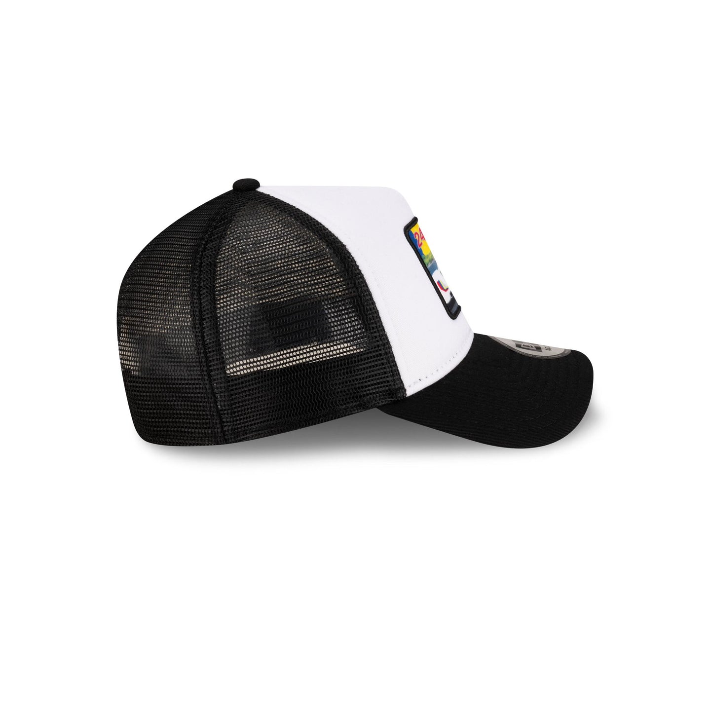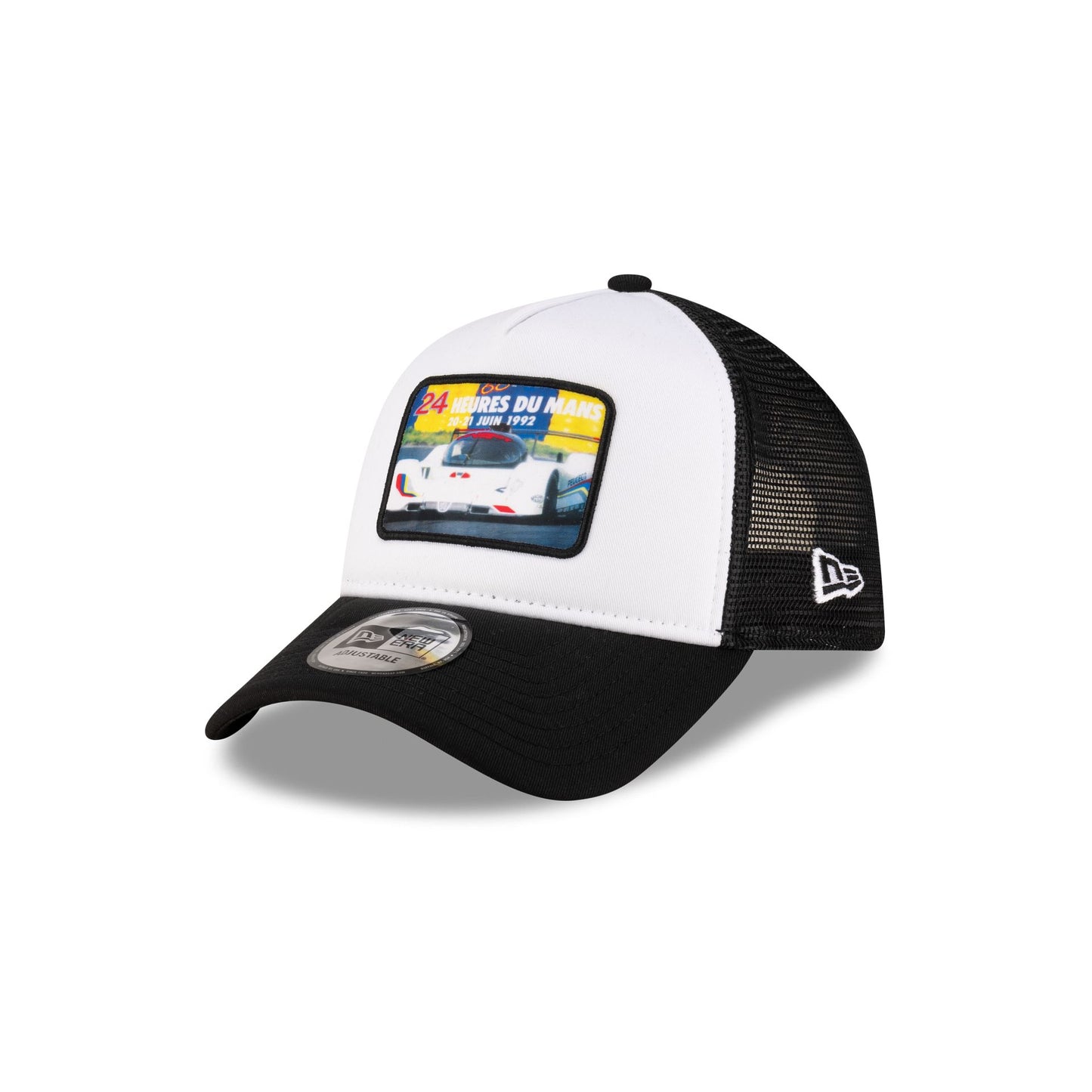The 24 Hours of Le Mans Patch Black 9FORTY A-Frame Trucker features a sublimated 24h Le Mans patch at the front panels with a woven loop label above a snapback closure at a mesh rear.