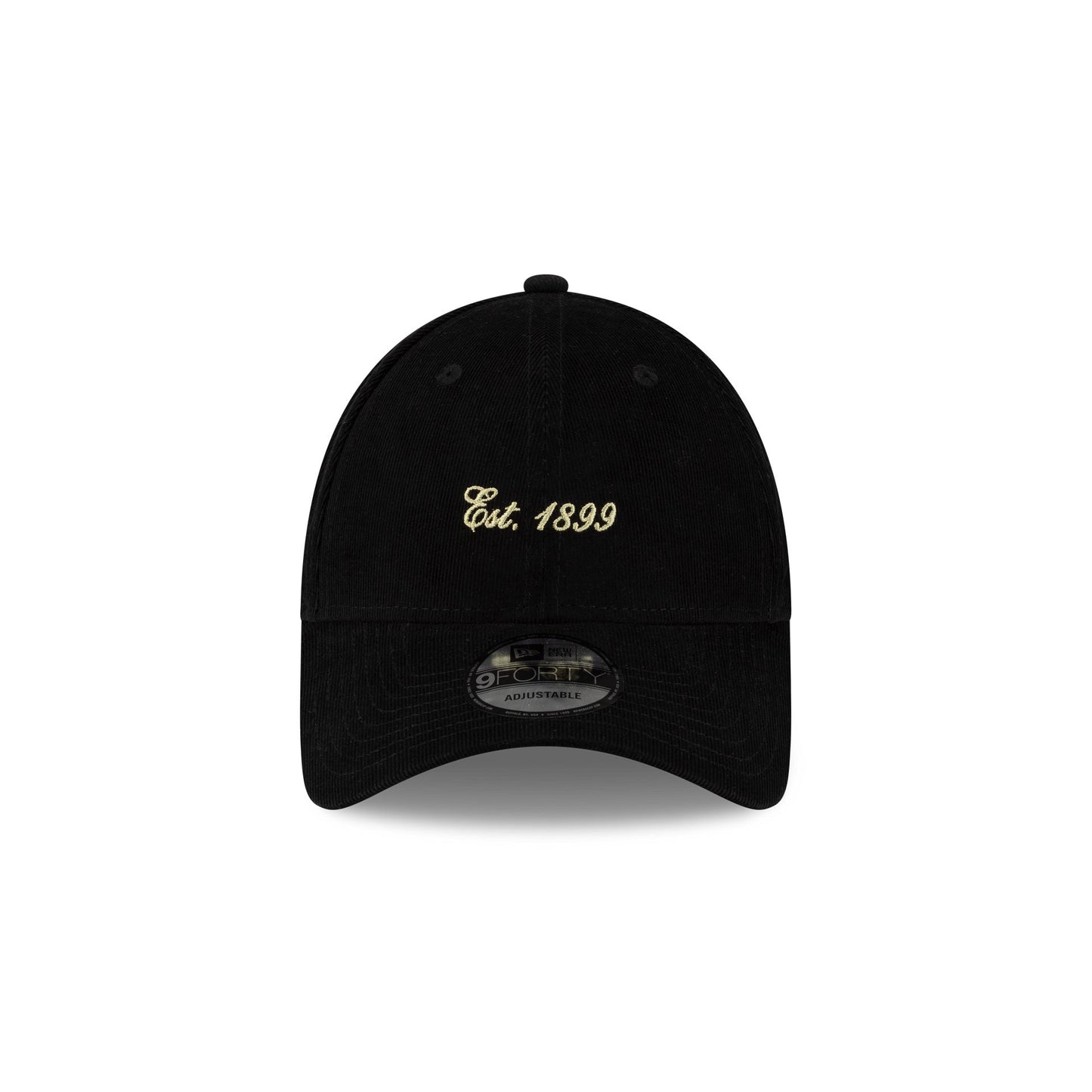 The AC Milan 1899 Corduroy 9FORTY Adjustable Cap features an embroidered AC Milan Est. 1899 at the front panels with a team tag at an adjustable D-Ring closure at the rear.