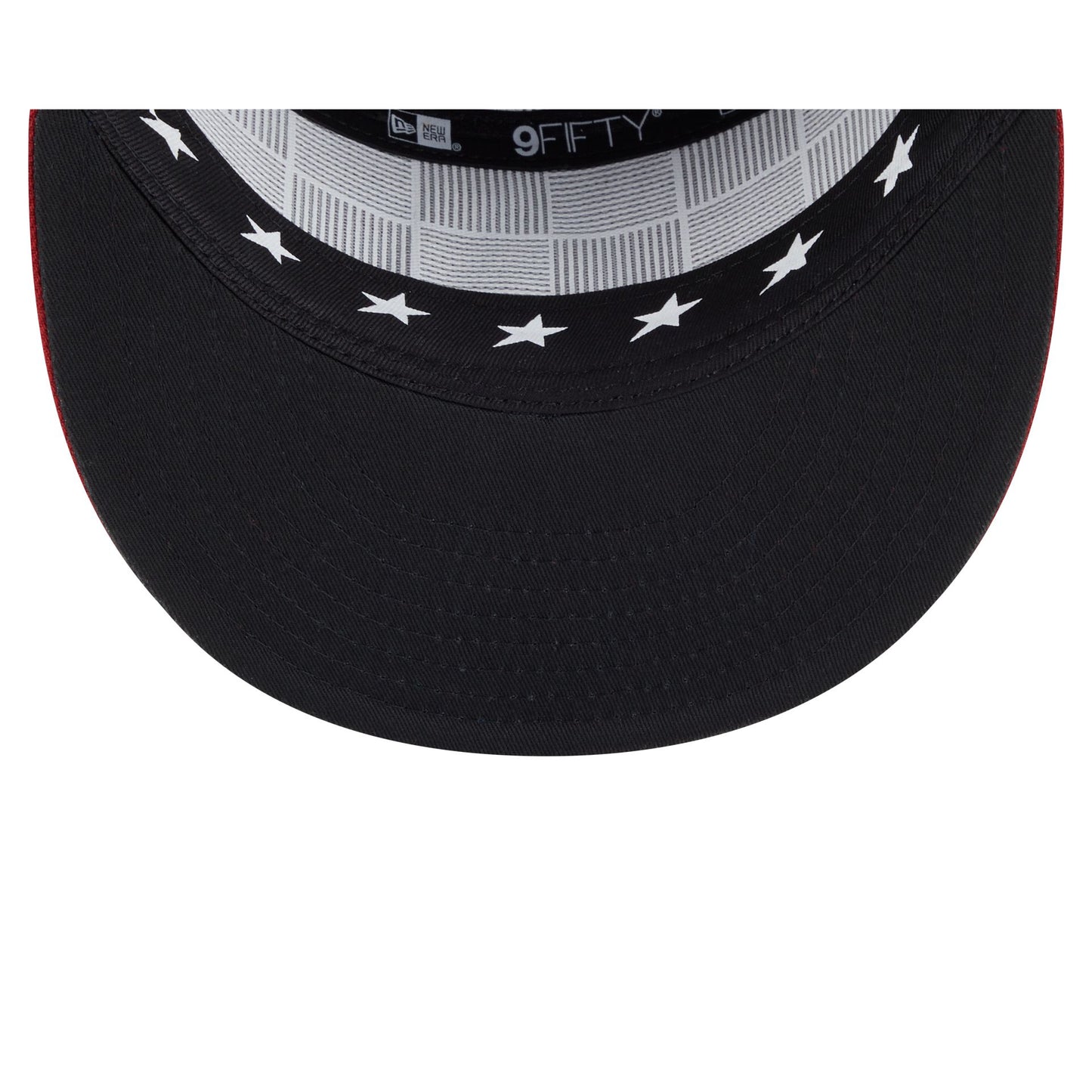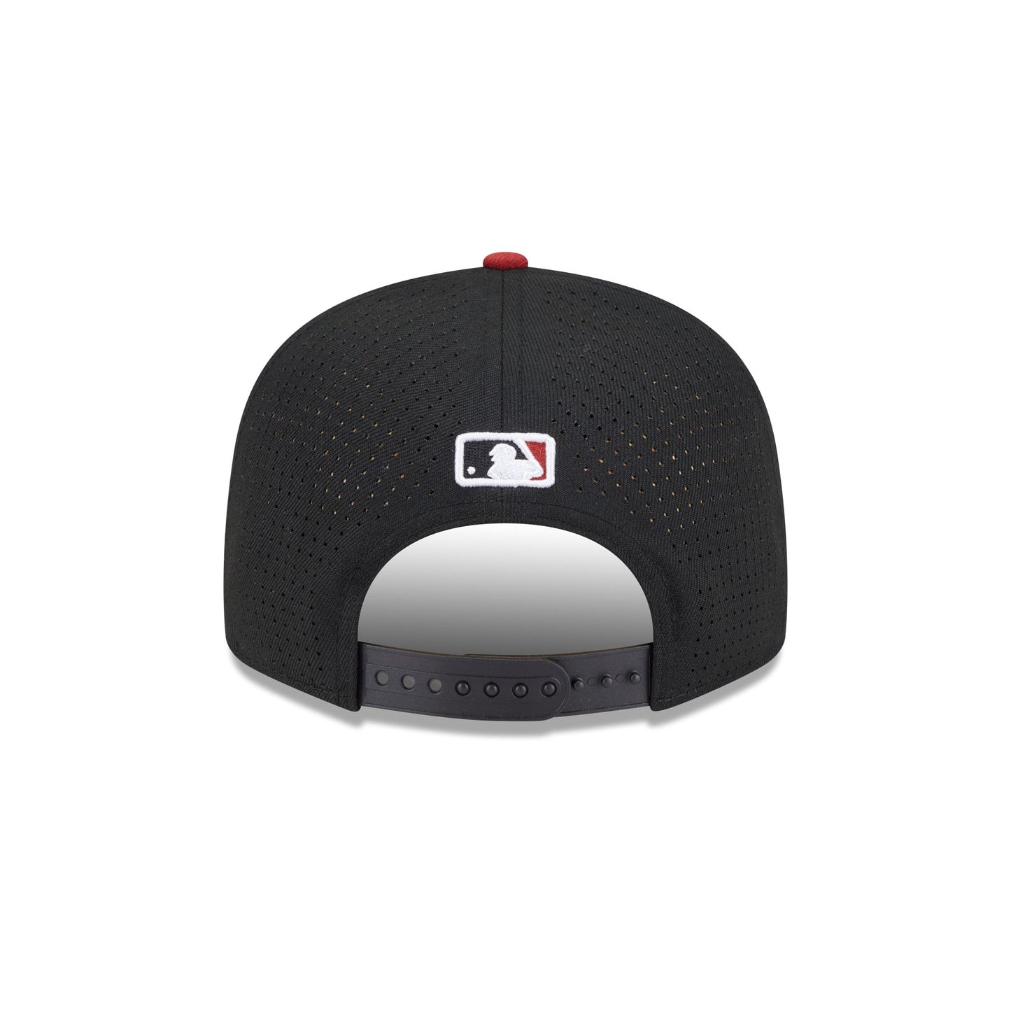 The Arizona Diamondbacks 2025 All-Star Game Split Panel 9FIFTY Snapback features an embroidered Diamondbacks logo at the front panels against a split-crown construction with breathable mesh fabric at the side and rear panels. Additional details include stars at the top panel, a 2025 All-Star Game patch at the right-wear side, the MLB Batterman logo above a snapback closure at the rear, and a black undervisor. The cap also features screen-printed stars on the sweatband.
