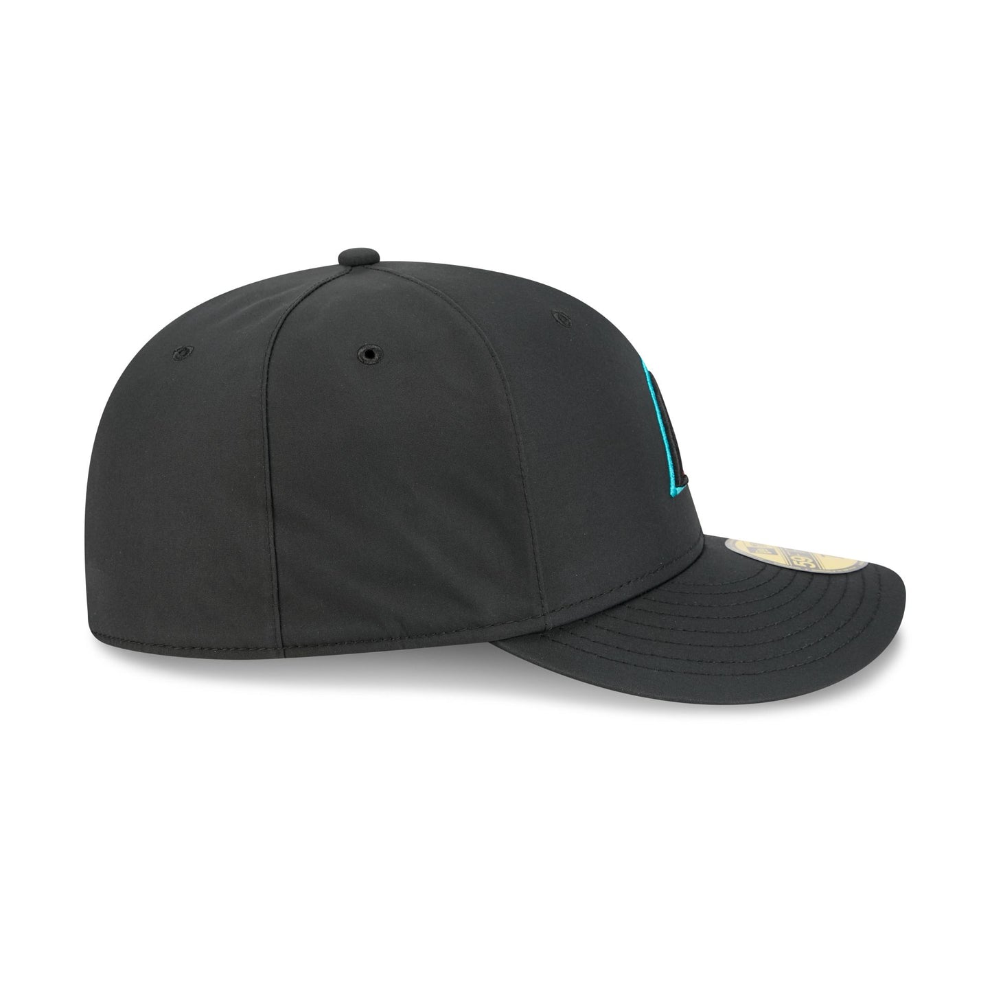 The Arizona Diamondbacks GORE-TEX 59FIFTY Fitted Cap features an embroidered Diamondbacks logo at the front panels with a metallic sheen silicone New Era Flag logo and GORE-TEX logo at the left-wear side. Additional details include the MLB Batterman logo at the rear, a gray undervisor, and a polyester fabrication throughout the cap. It is waterproof, breathable, and lightweight. This 59FIFTY comes with a pre-curved visor.