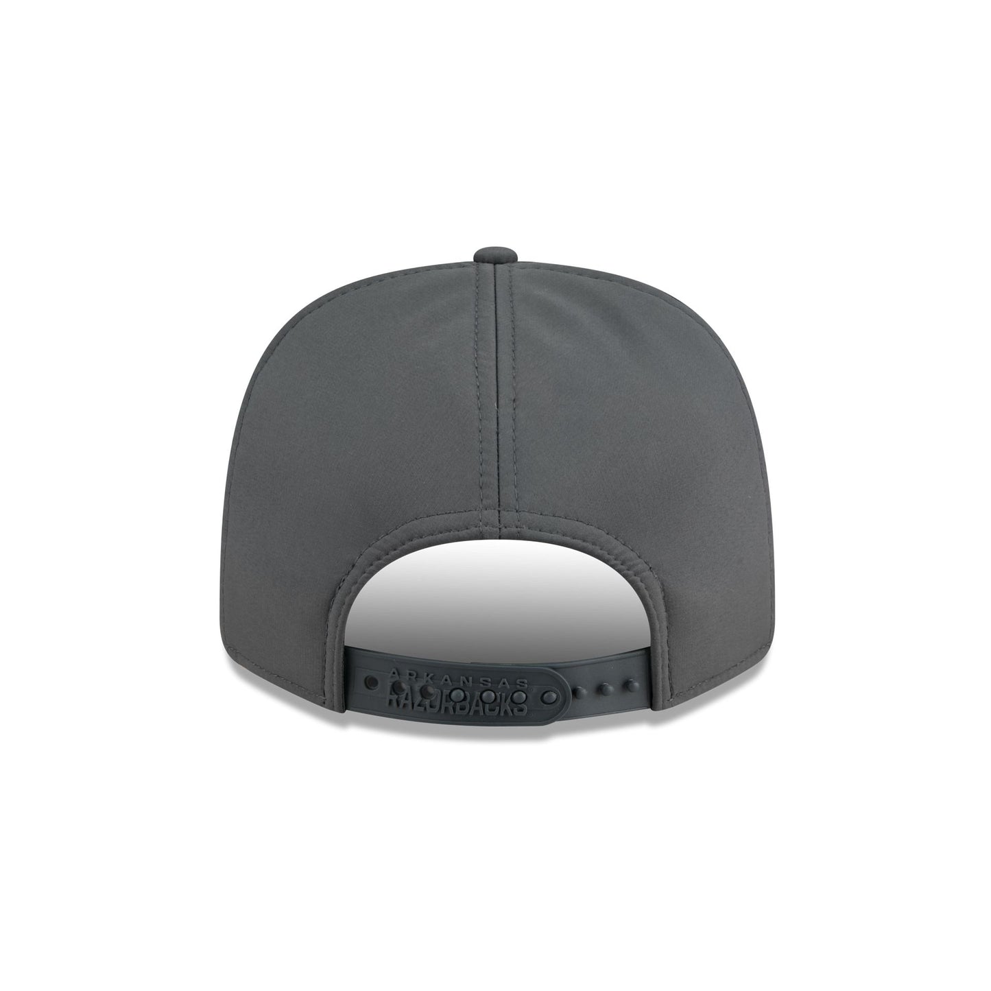 The Arkansas Razorbacks Cold Weather 9SEVENTY Stretch-Snap features a sewn-down silicone Razorbacks logo patch at the front panels with a water-repellent quill tech fabrication throughout and an insulated crown with a quick-dry cushioned sweatband. Additional details include a team logo on a soft silicone snapback closure at the rear with team color silicone transfer details at the undervisor.