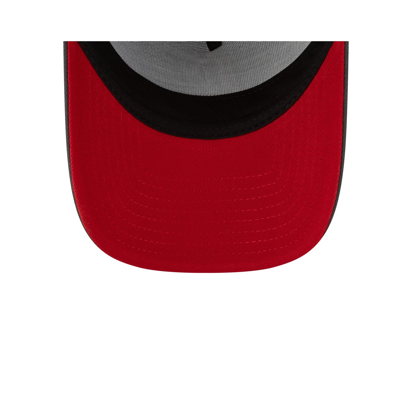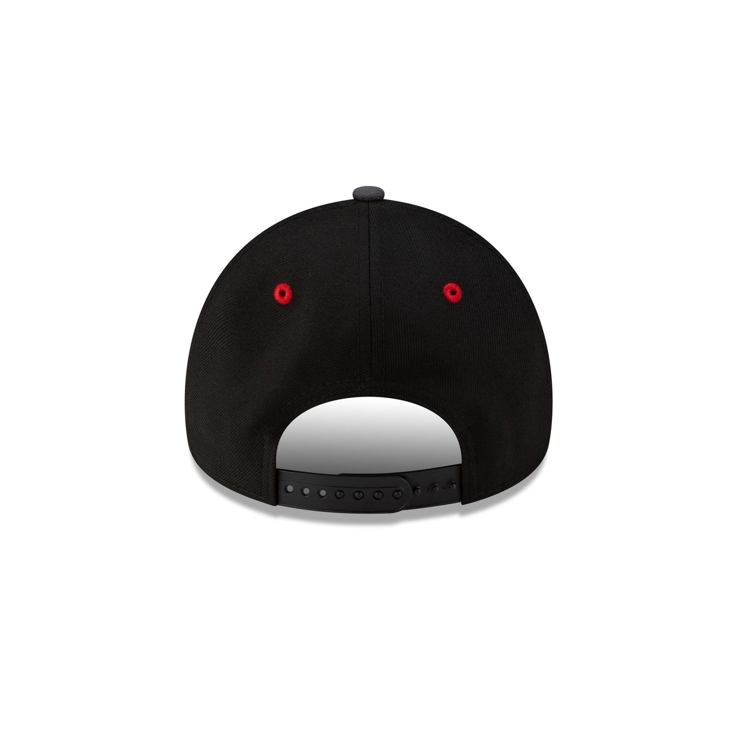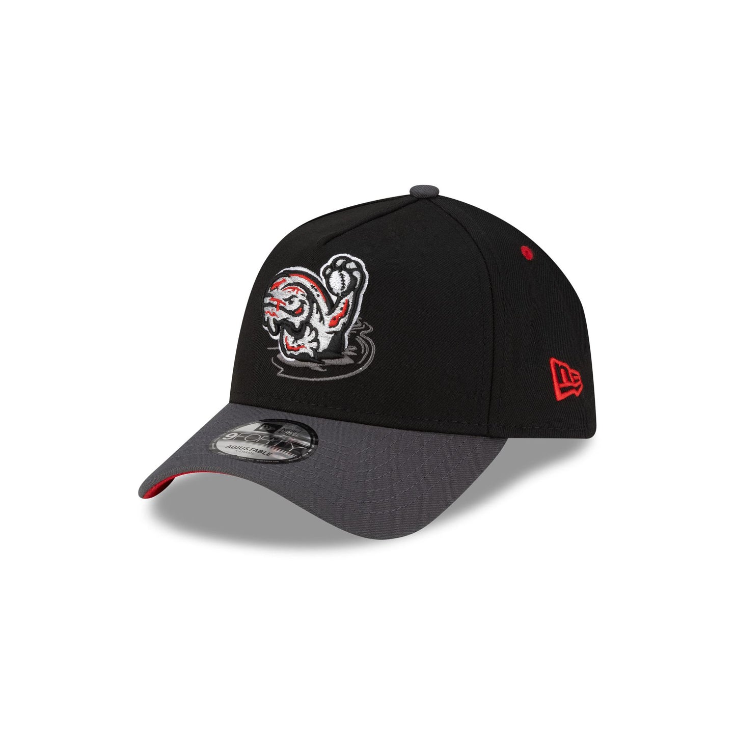 The Asheville Tourists Halloween Red 9FORTY A-Frame Snapback features an embroidered Tourists themed logo at the front panels with an adjustable snapback closure at the rear, a gray visor, and a red undervisor.