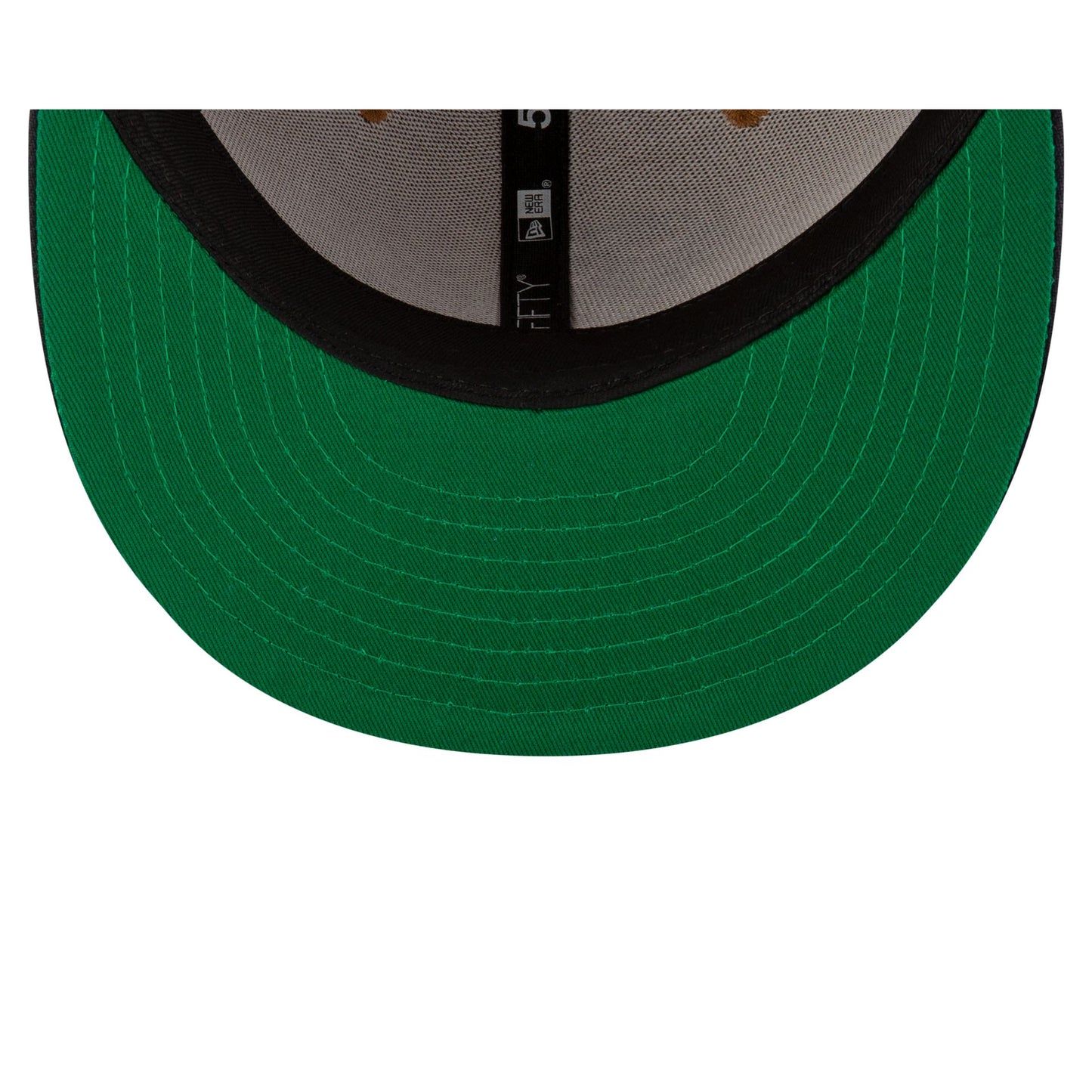 The Atlanta Braves Mini Mascot 59FIFTY Fitted Cap features an embroidered Braves mascot at the front panels with a matching MLB Batterman logo at the rear. Additional details include a Turner Field Final Season patch at the right-wear side and a green undervisor.