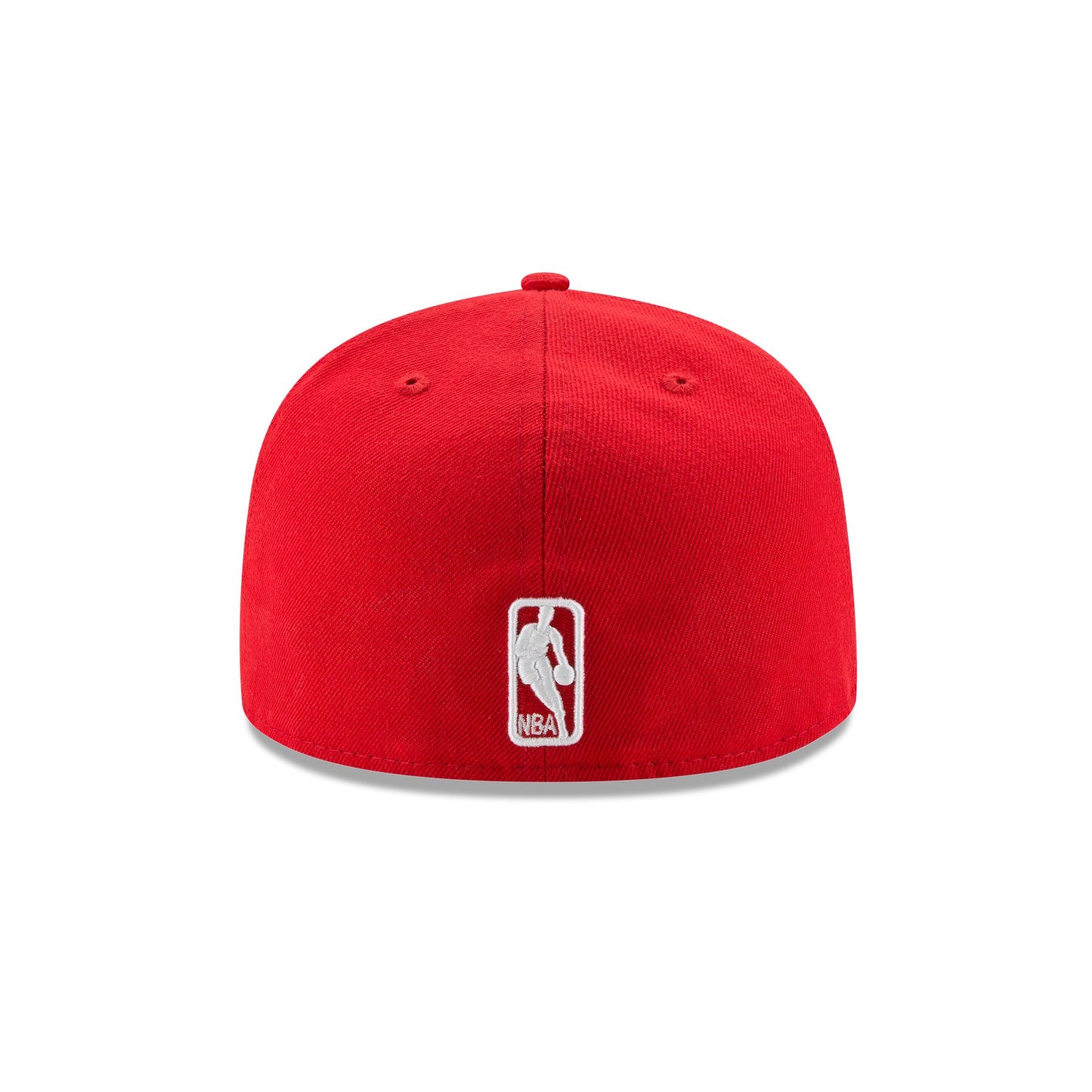 The Atlanta Hawks Basic 59FIFTY Fitted Cap features an embroidered Hawks logo at the front panels with a matching NBA Logoman at the rear and a gray undervisor.