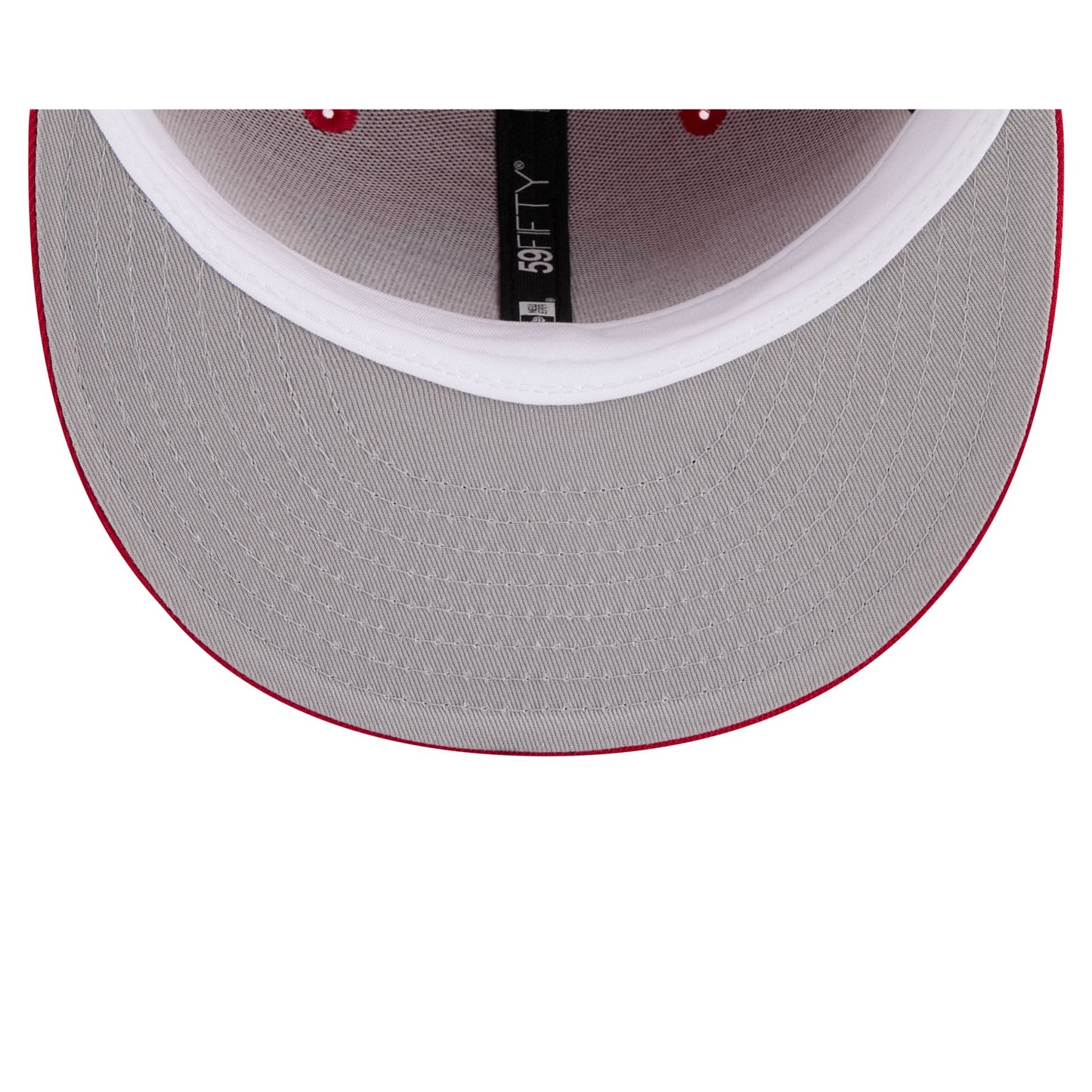 The Baltimore Bullets 1963-1968 Hardwood Classics 59FIFTY Fitted Cap features an embroidered vintage Bullets logo at the front panels with the NBA Logoman at the rear and a gray undervisor.