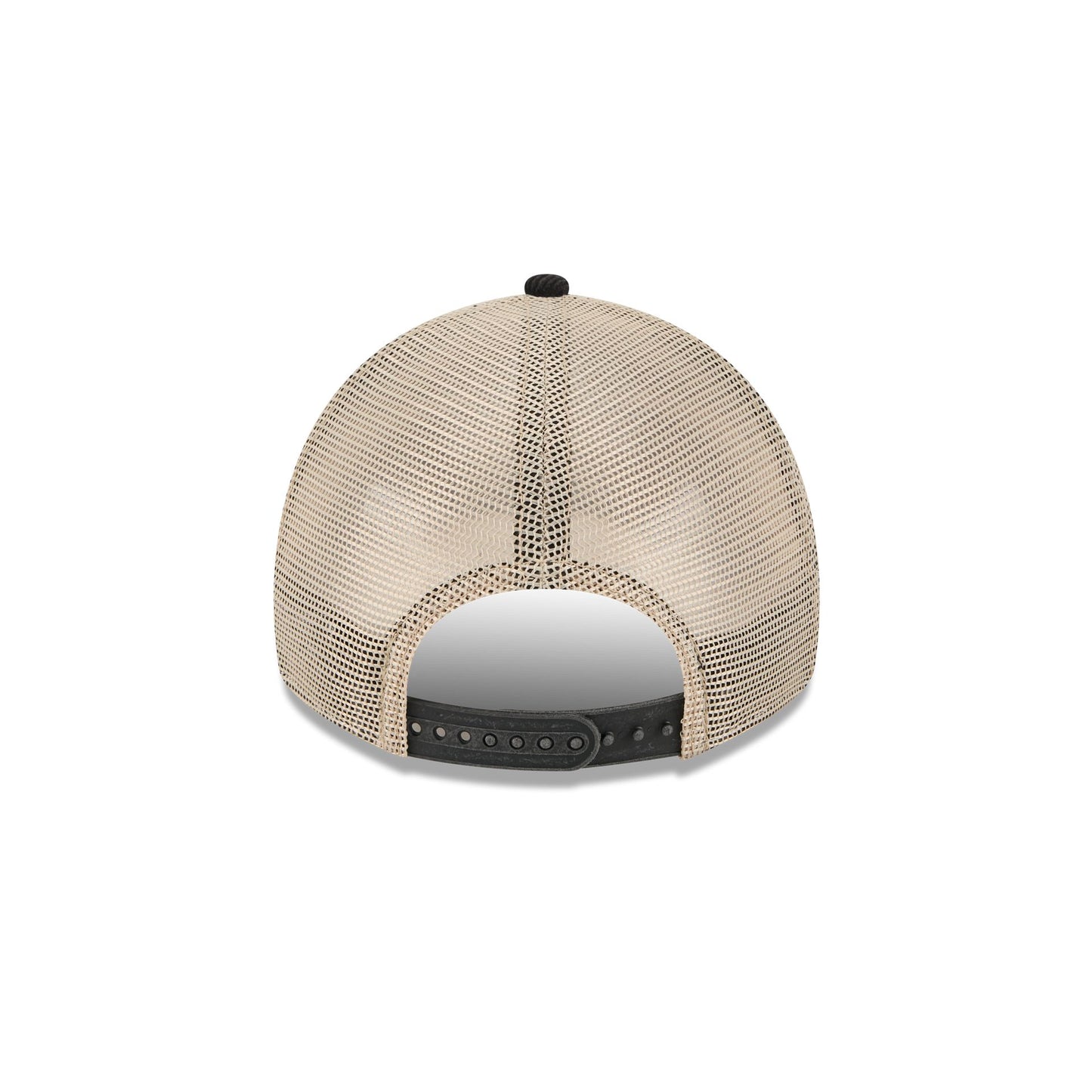 The Boston Bruins Vintage Landscape 9TWENTY A-Frame Trucker features an embroidered Bruins Vintage Landscape patch at the front panels with a team logo at the right-wear side. Additional details include an adjustable snapback closure at the rear and a gray undervisor.