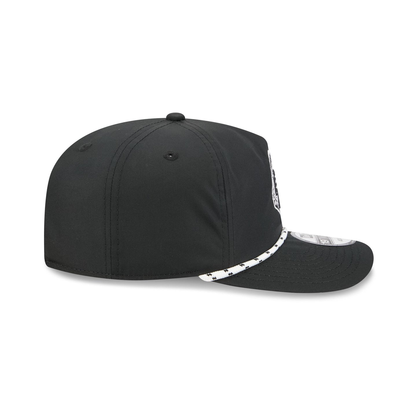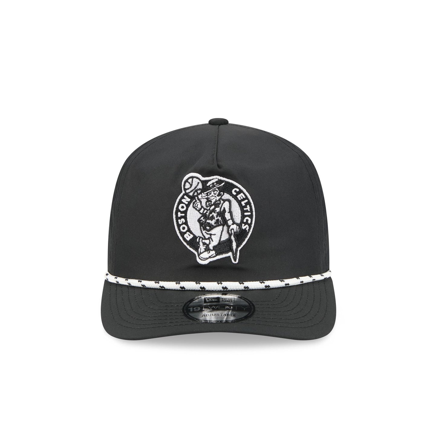 The Boston Celtics Black and White Rope 19TWENTY Snapback features an embroidered Celtics logo and rope at the front with a snapback closure at the rear and a gray undervisor.
