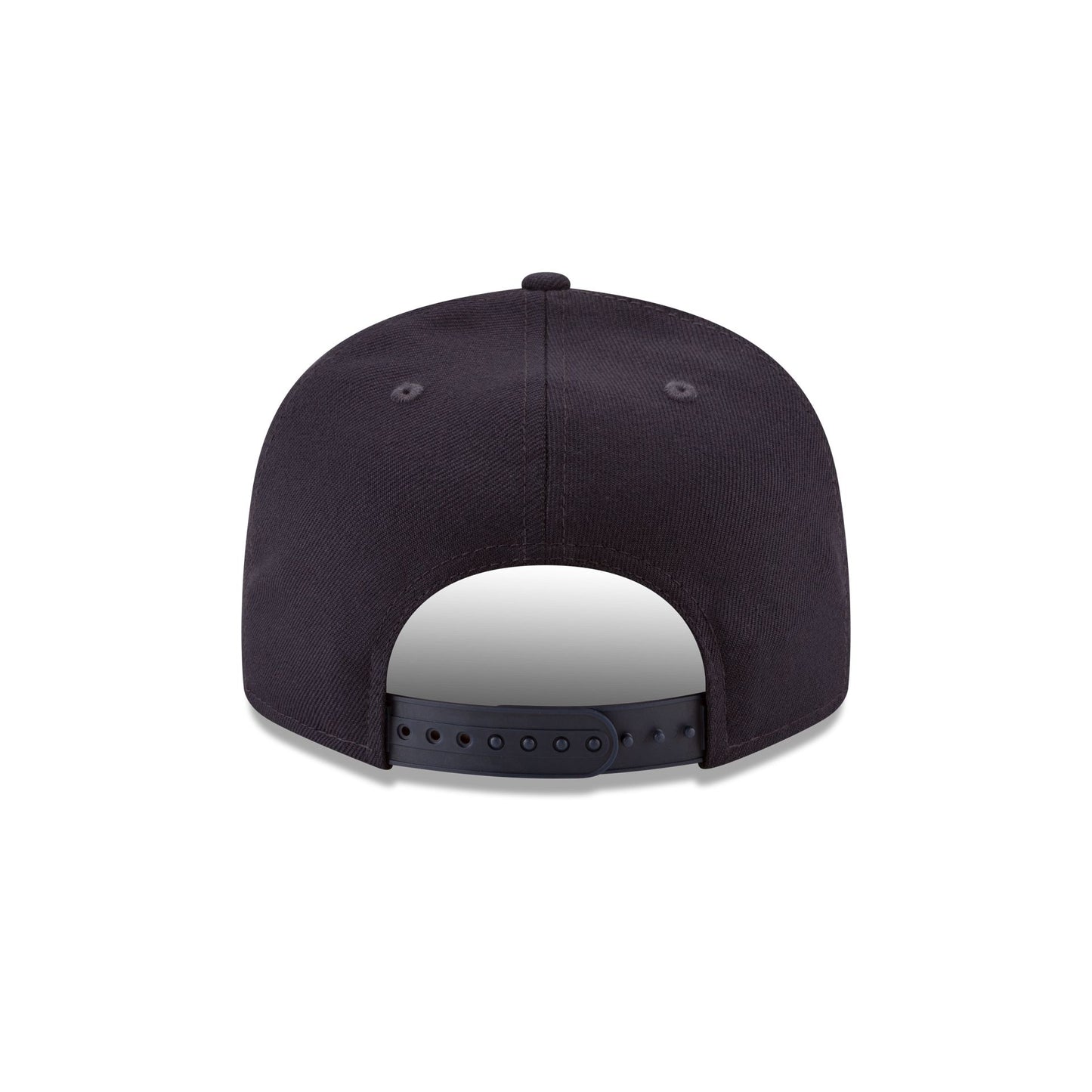The Boston Red Sox 2025 Postseason Side Patch 9FIFTY Snapback features an embroidered Red Sox logo at the front panels with a 2025 Post Season patch at the right-wear side and an adjustable snapback closure at the rear.