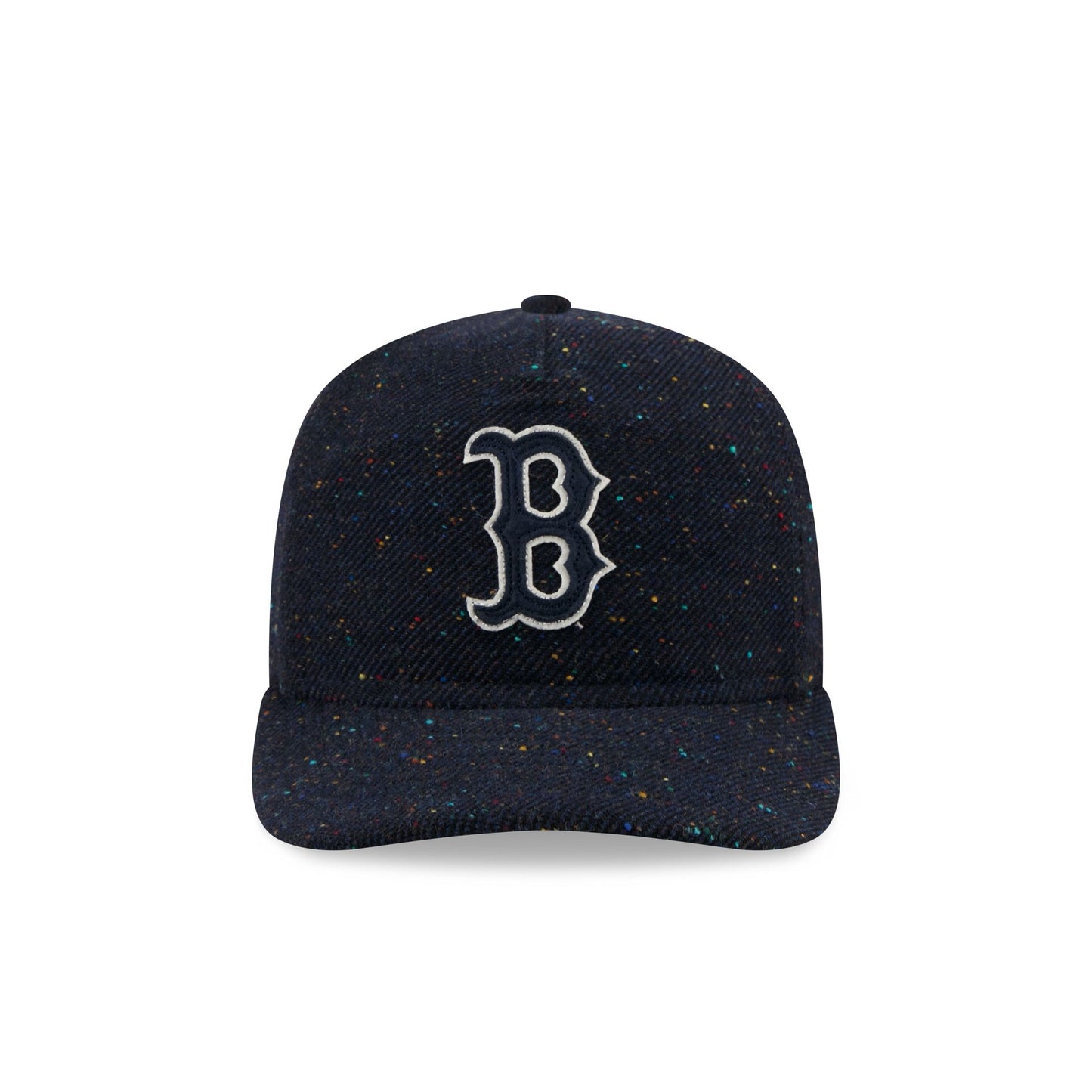 The Boston Red Sox Three Looms Speckled Wool 19TWENTY Adjustable Red Sox patch at the front with an adjustable buckle closure at the rear and a green undervisor.