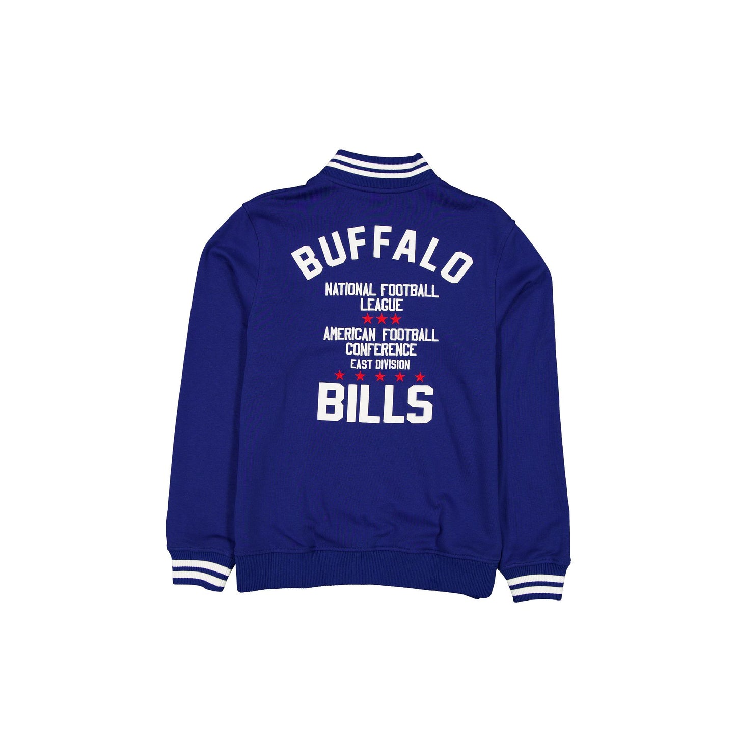 The Buffalo Bills Throwback Prep Quarter Zip features an embroidered Bills logo at the left chest with a quarter zip closure and a New Era jock tag at the left hip. Additional details include a woven team wordmark and embroidered conference wordmark at the rear.