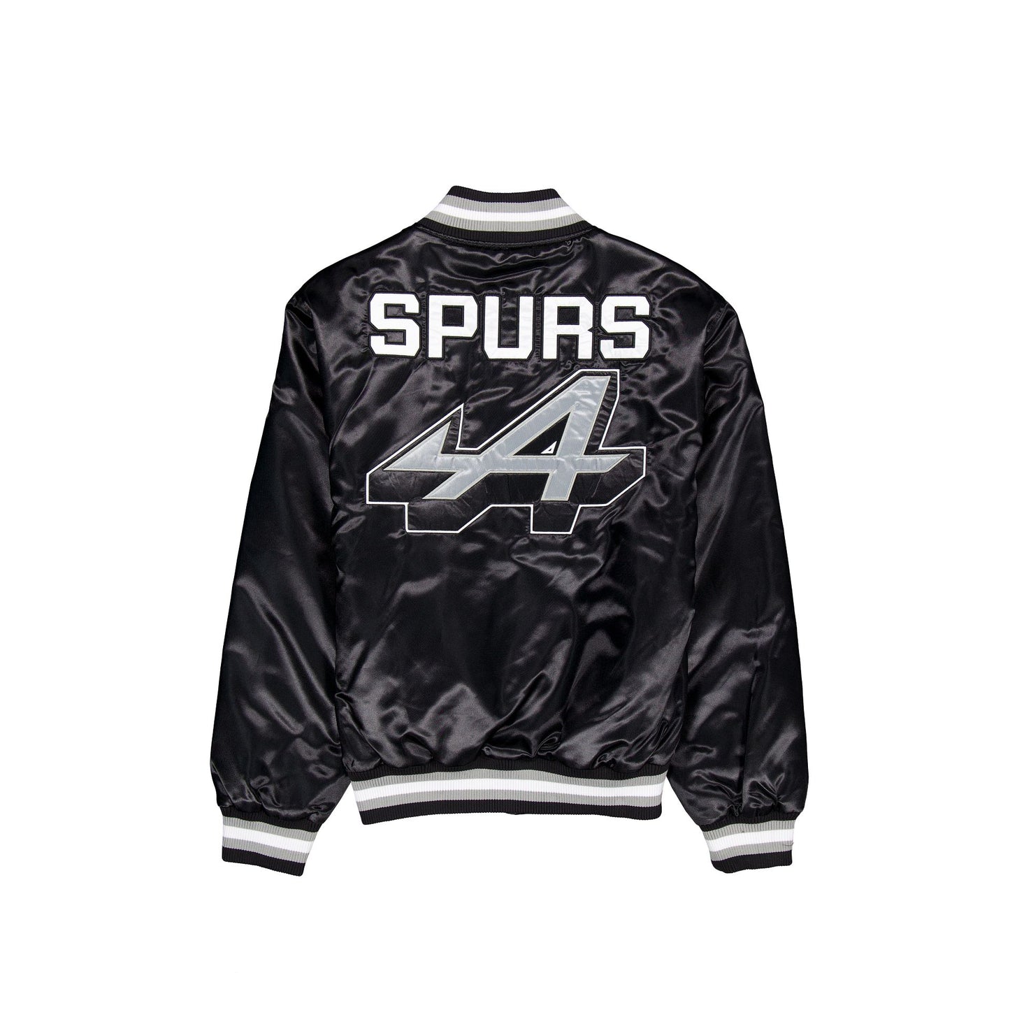 The BWT Alpine F1 Team x San Antonio Spurs Bomber Jacket features an embroidered BWT Alpine F1 Team wordmark and New Era Flag at the chest with an Alpine San Antonio Spurs Austin, Texas wordmark above a woven Alpine x New Era tag at the hem. Additional details include a screen-printed BWT Alpine F1 Team logo and Spurs wordmark at the rear with a snap-button closure.