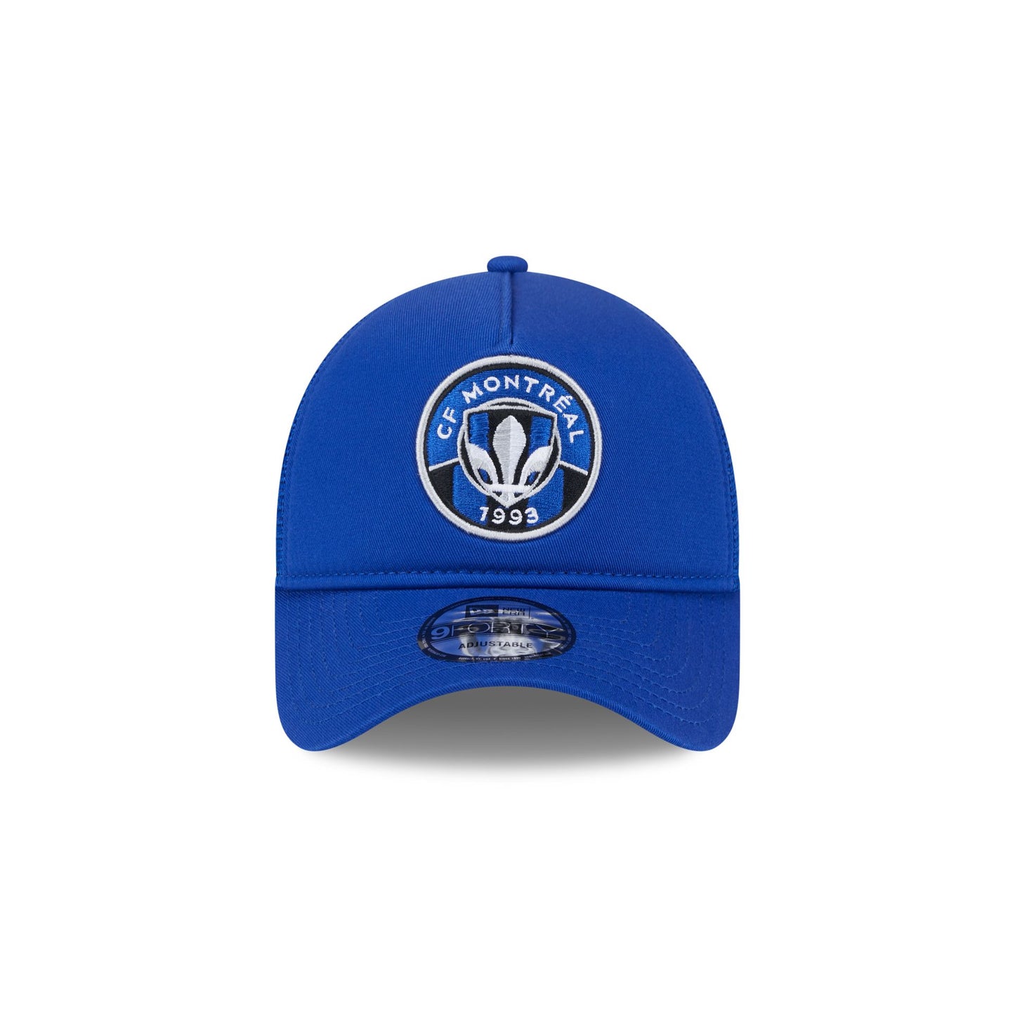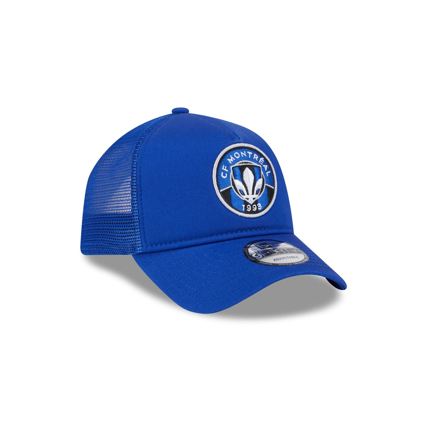 The CF Montréal Team 9FORTY A-Frame Snapback features an embroidered CF Montréal logo at the front panels with a mesh back and a snapback closure at the rear.