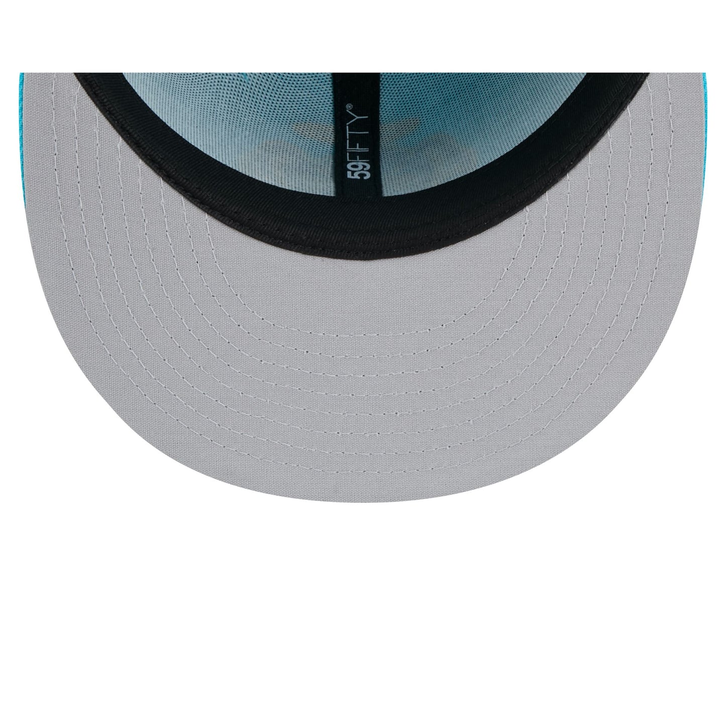 The Charleston RiverDogs Copa de la Diversión 59FIFTY Fitted Cap features an embroidered Perros Santos logo at the front panels with a matching MiLB Batterman logo at the rear.