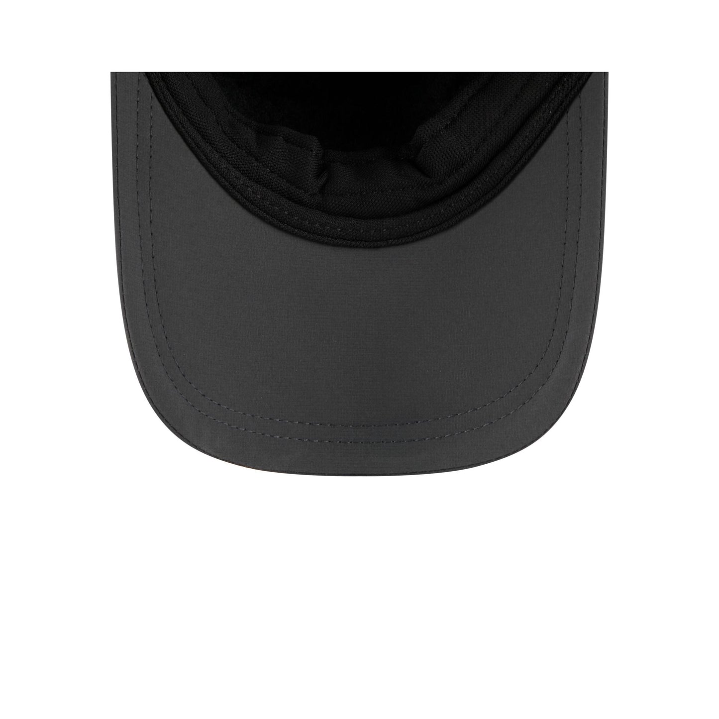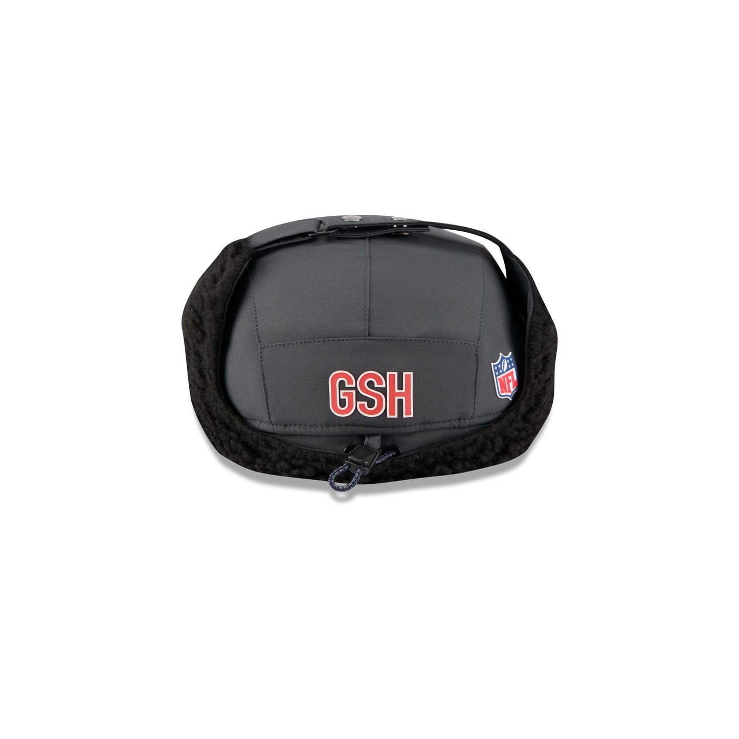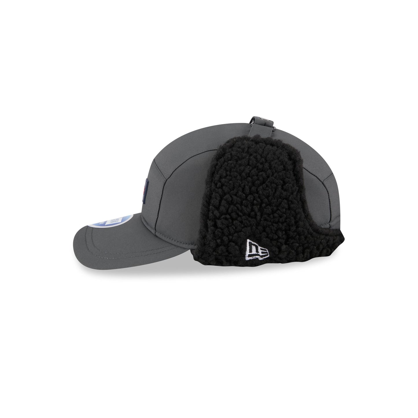 The Chicago Bears 2025 Sideline Cold Weather Steel Clouds Runner Dogear Adjustable Cap features a sewn-down silicone Bears logo patch at the front panels with a water-repellent quill tech fabrication throughout with an insulated crown and sherpa lining. Additional details include a buckle strap button secured at the top of the crown that folds down to cover the ears, and an adjustable elastic toggle at the back for a customizable fit.