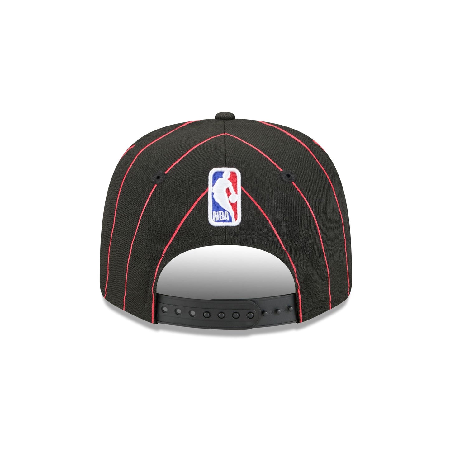 The Chicago Bulls 2025 Statement Edition 9SEVENTY Stretch-Snap features an embroidered Bulls Statement Edition logo at the front panels with a logo at the right-wear side. Additional details include the NBA Logoman above an adjustable stretch-snap closure at the rear and a gray undervisor.