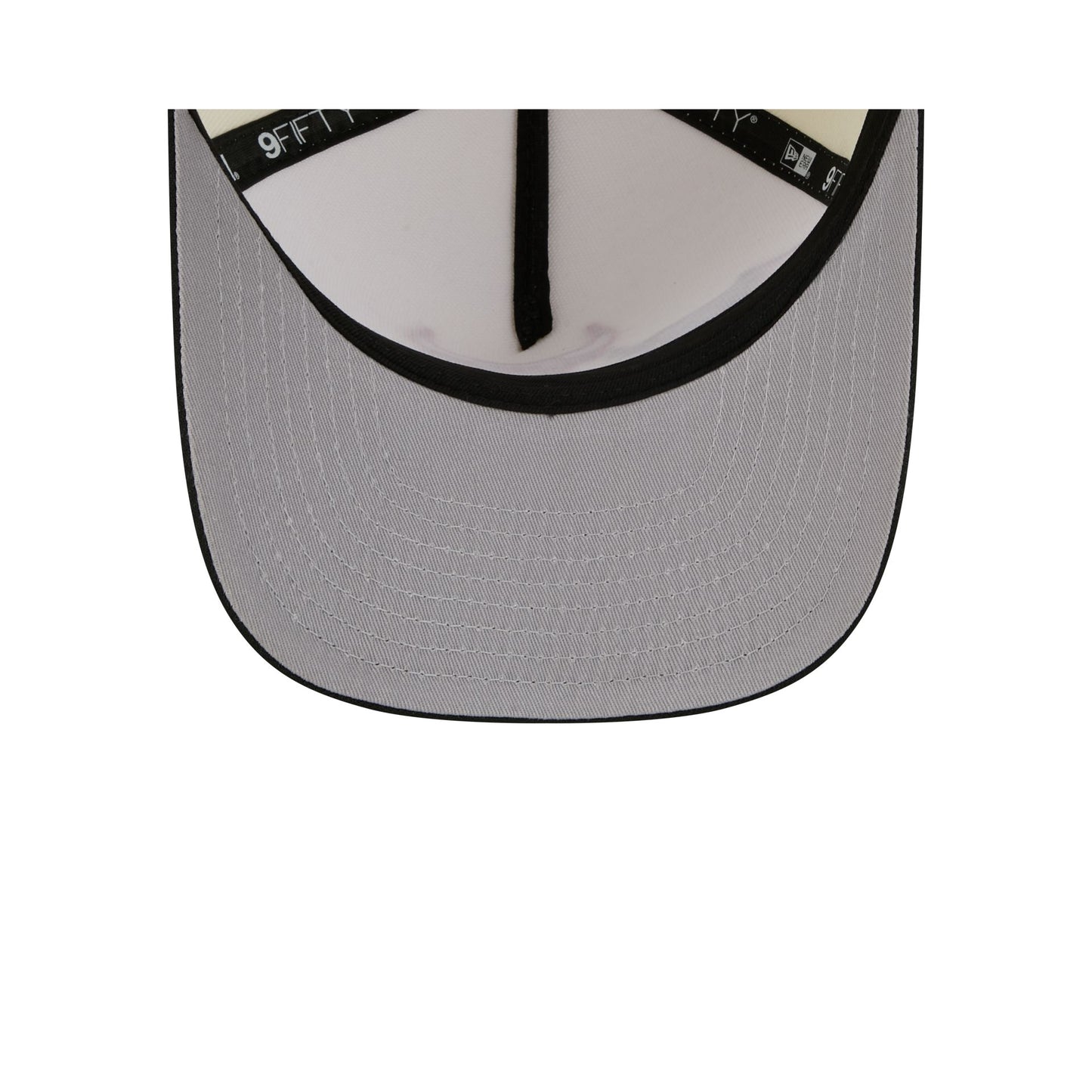 The Chicago Bulls 1960-1970 Hardwood Classics Chrome White 9FIFTY A-Frame Snapback features an embroidered vintage Bulls logo at the front panels with a team graphic to the right. Additional details include an adjustable snapback closure at the rear and a gray undervisor.