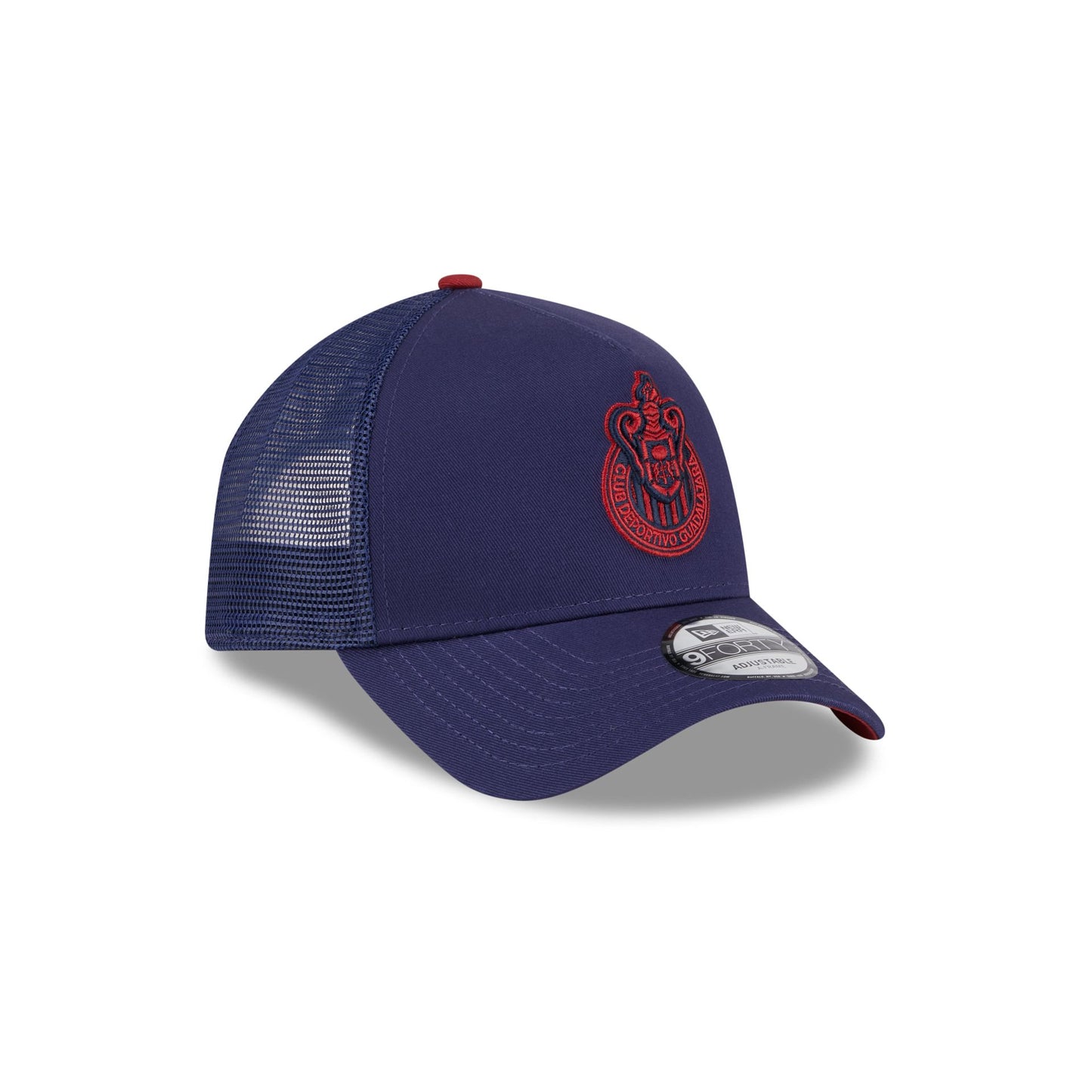 The Chivas Alt Team Color 9FORTY Trucker features an embroidered Chivas logo at the front panel with a blue visor, a red undervisor, and a snapback closure at the rear.