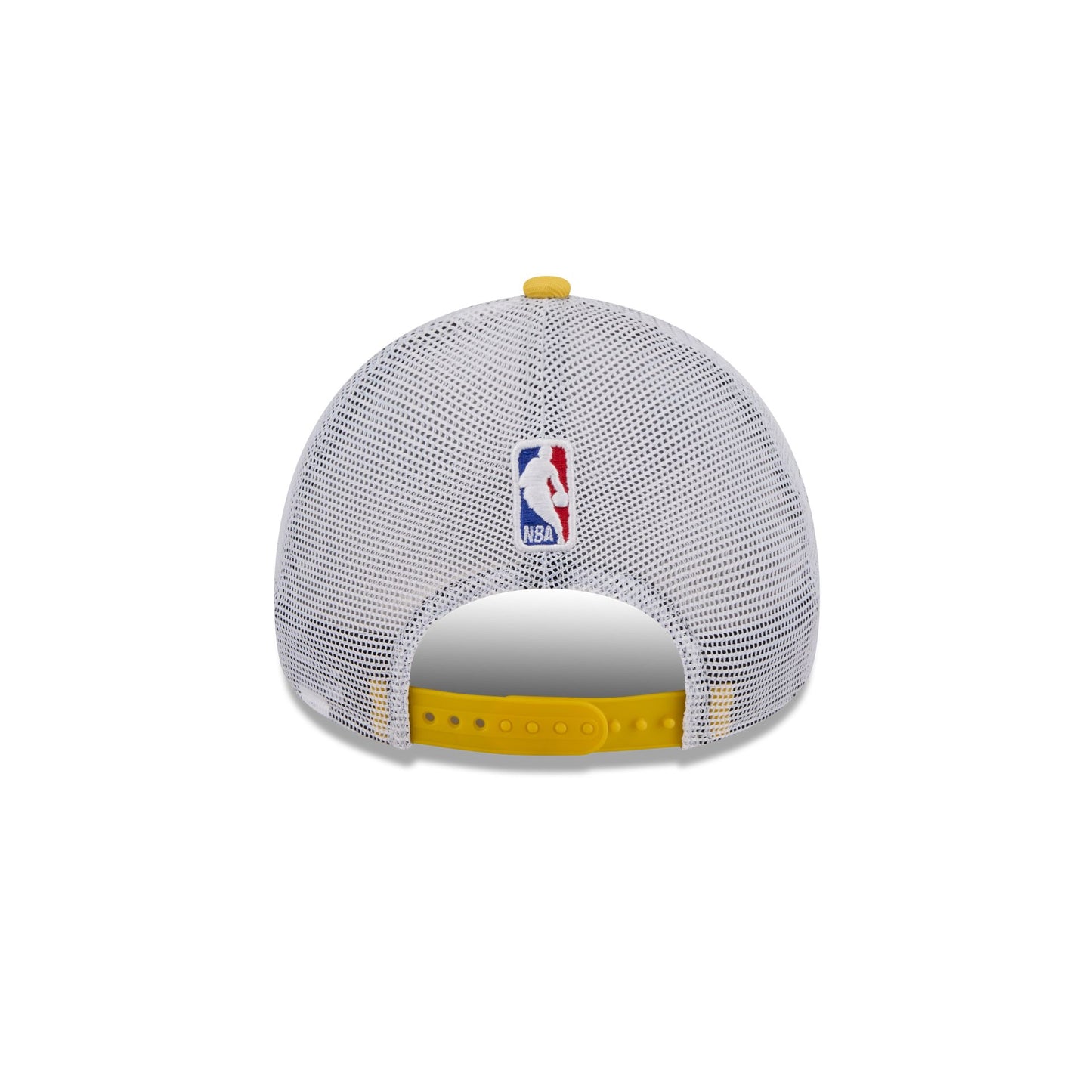 The Cleveland Cavaliers 2025 City Edition 9FORTY A-Frame Trucker features an embroidered Cavaliers City Edition logo at the front panels with a logo at the right-wear side. Additional details include the NBA Logoman above an adjustable snapback closure at a mesh rear and a gray undervisor.