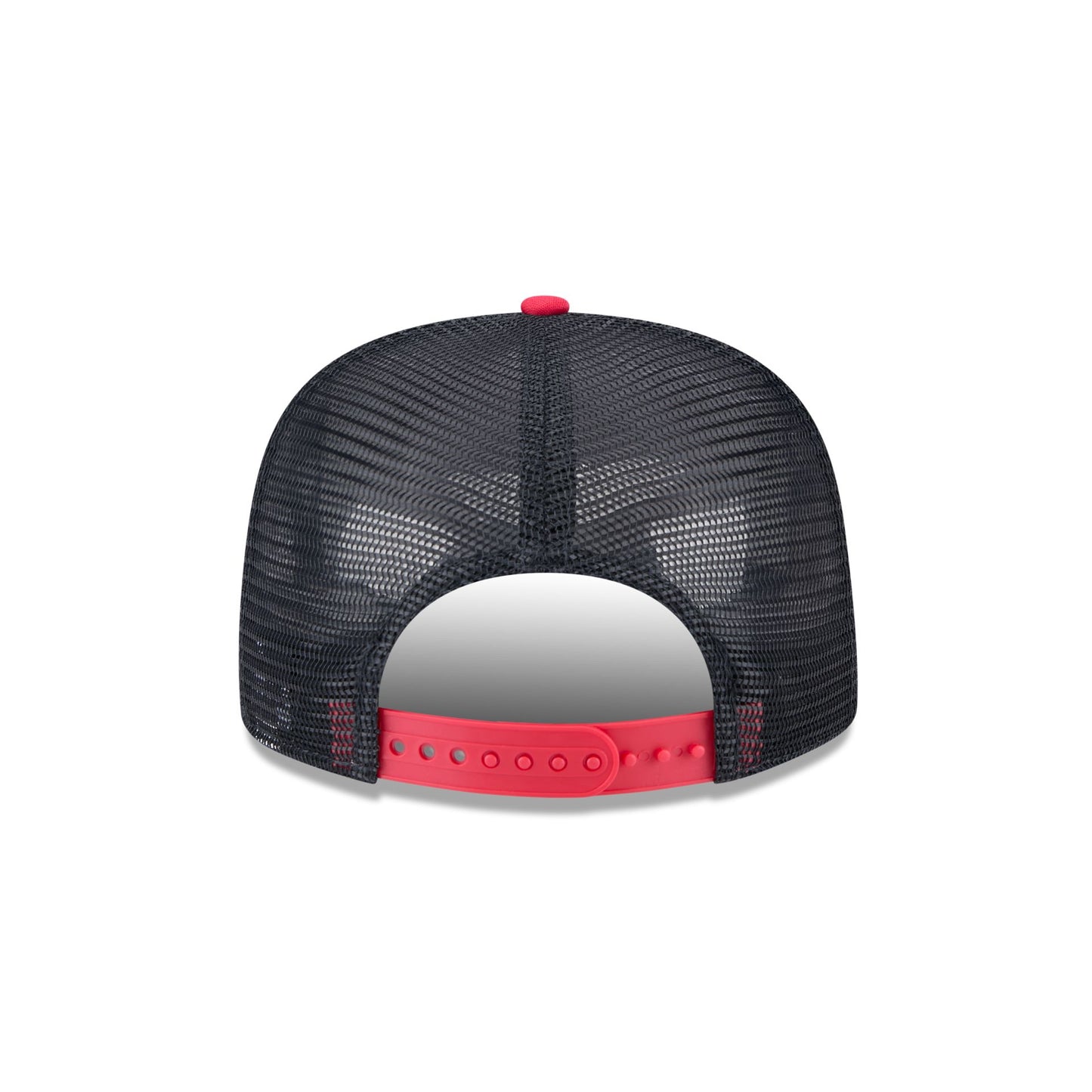 The Cleveland Guardians Retro Script 9FIFTY A-Frame Trucker features a distressed screen-printed Guardians script wordmark and team logo at the front panels with a snapback closure at a mesh rear and a gray undervisor.