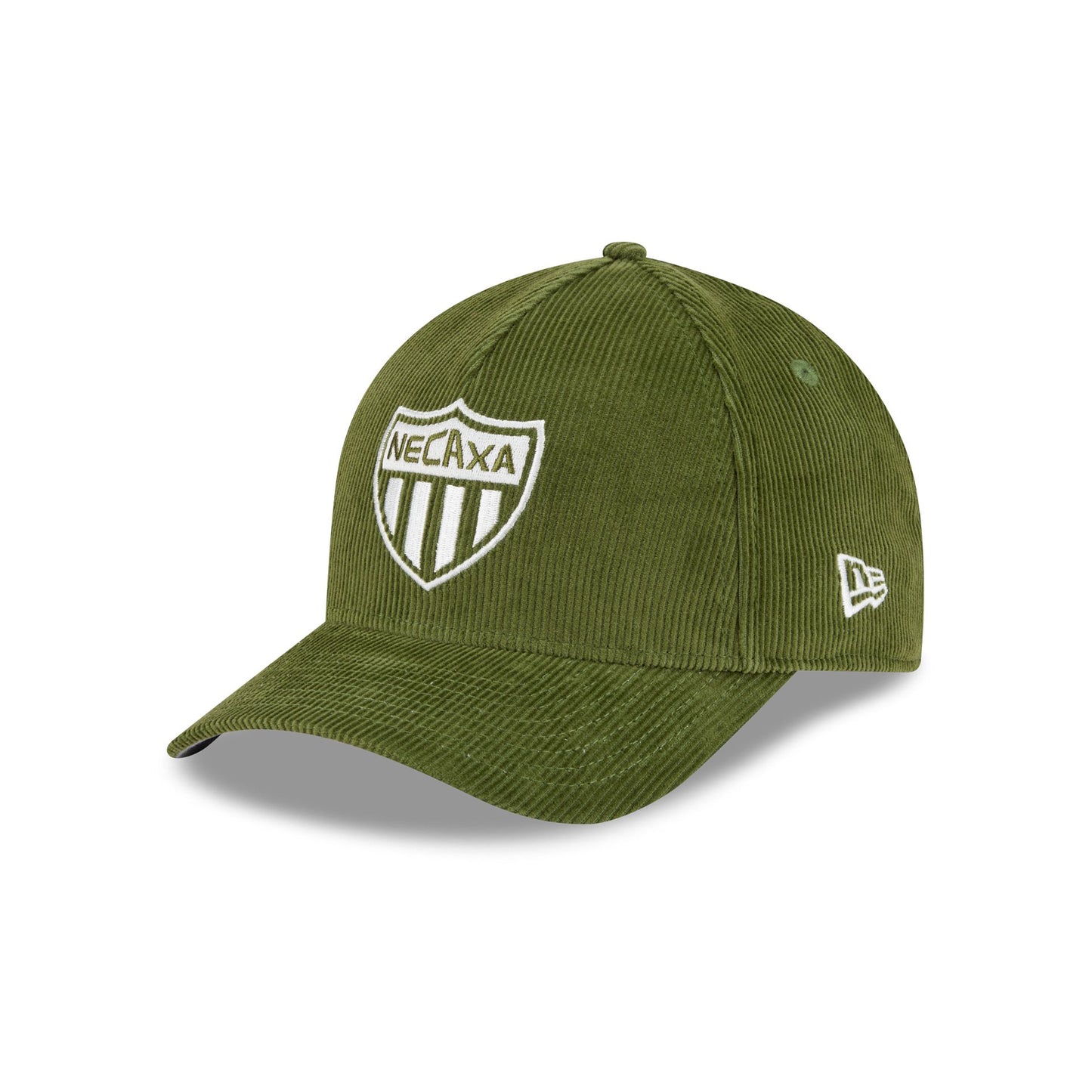The Club Necaxa Olive Corduroy 9FORTY M-Crown Snapback features an embroidered Necaxa logo at the front panels with a snapback closure at the rear and a gray undervisor.