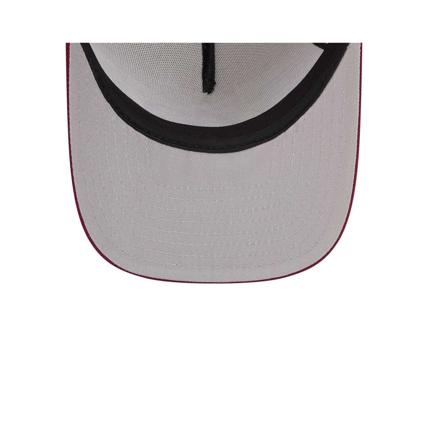 The Colorado Avalanche Banner 9FIFTY A-Frame Trucker features a embroidered Avalanche logo at the front panels against a screen-printed stripe at the front panels. Additional details include a snapback closure at a mesh rear and a gray undervisor.