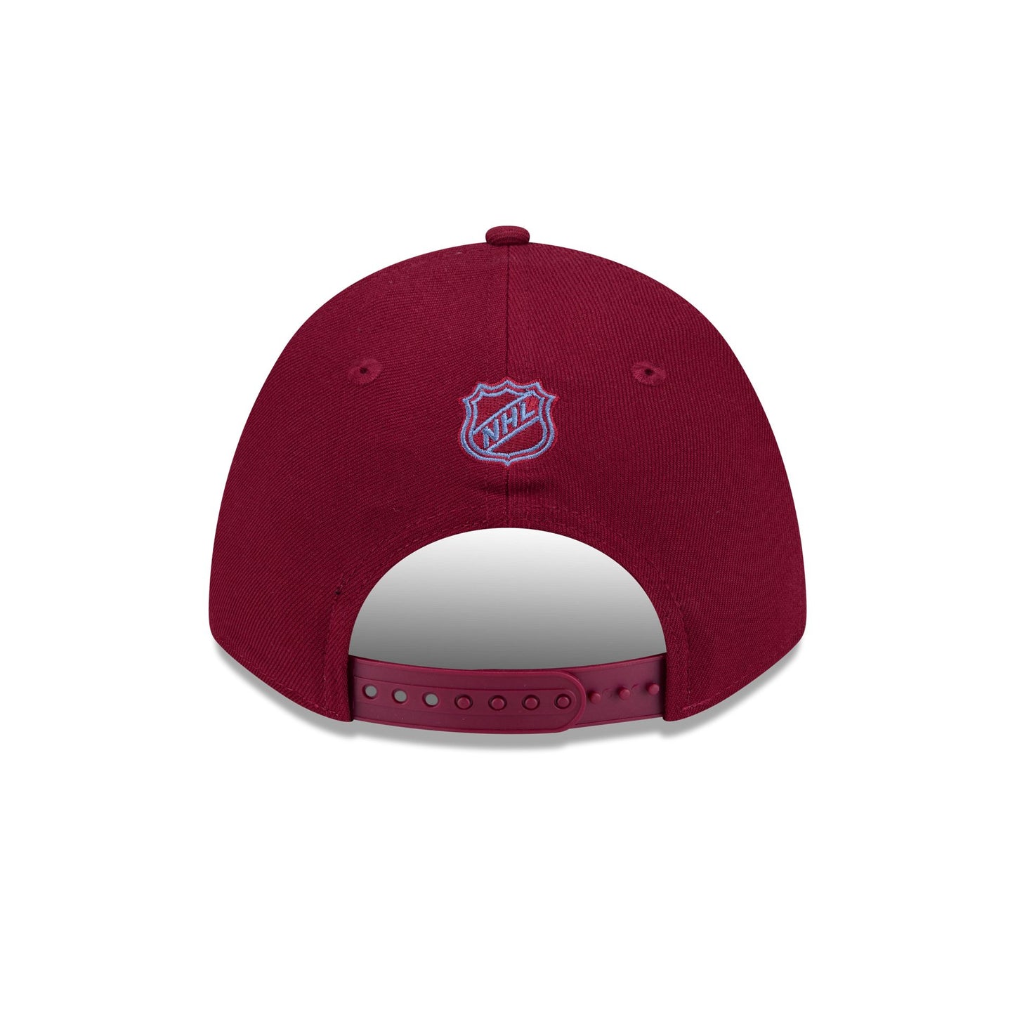 The Colorado Avalanche Team 9FORTY M-Crown Snapback features an embroidered Avalanche logo at the front panels with the NHL Shield logo above an adjustable snapback closure at the rear and a gray undervisor.