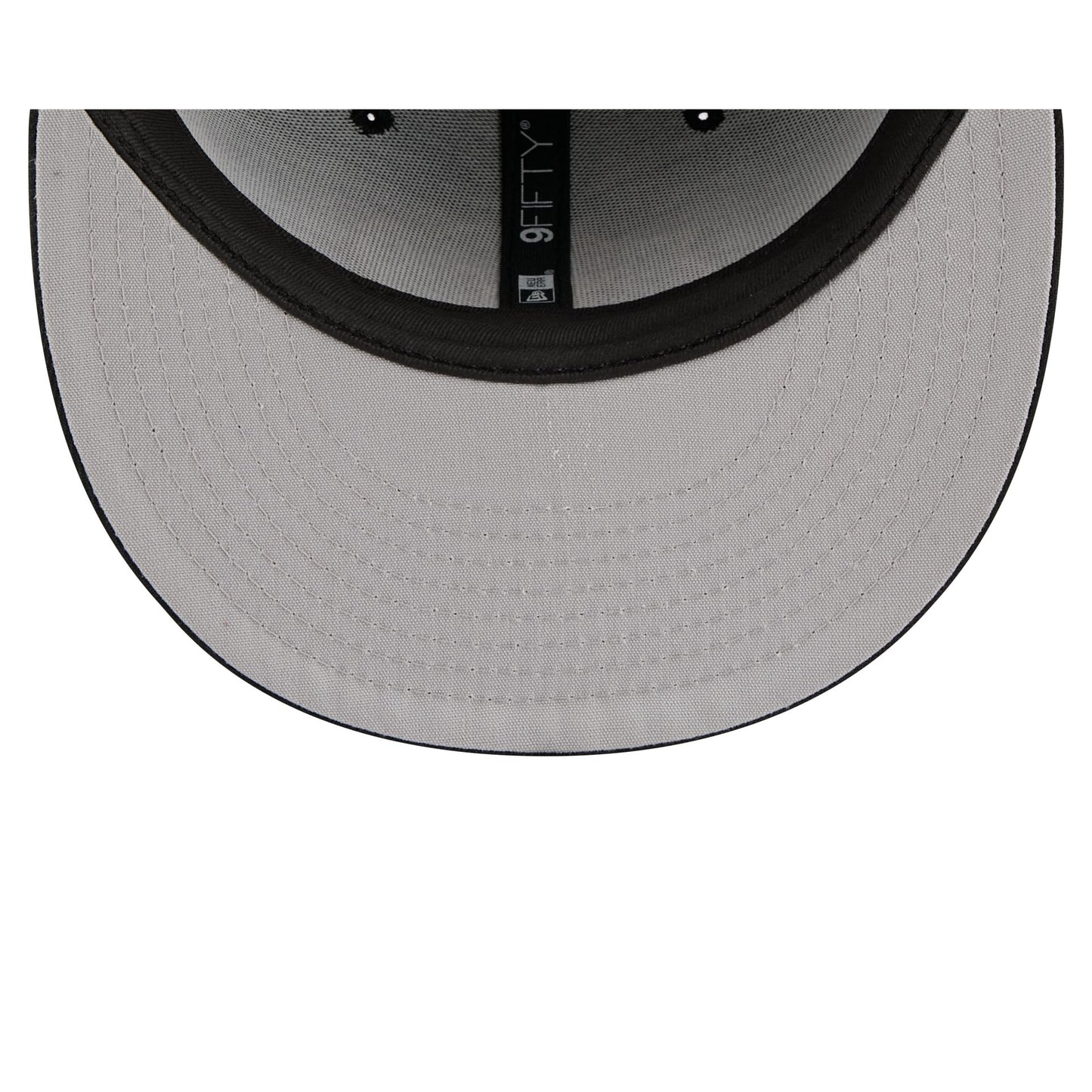 The Colorado Buffaloes Sticker Helmet 9FIFTY Snapback features an embroidered Buffaloes logo at the front panels with embroidered team stickers the back panels. Additional details include an adjustable snapback closure at the rear and a gray undervisor.