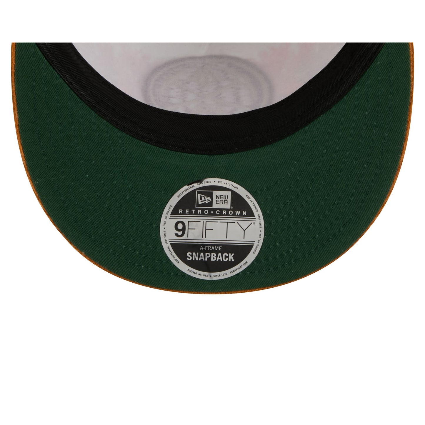 The Denver Nuggets Fall Forest Retro Crown 9FIFTY Adjustable Cap features an embroidered Nuggets wool yarn logo at the front panels against an image of a fall forest throughout the cap. Additional details include a corduroy visor and an adjustable buckle closure at the rear.