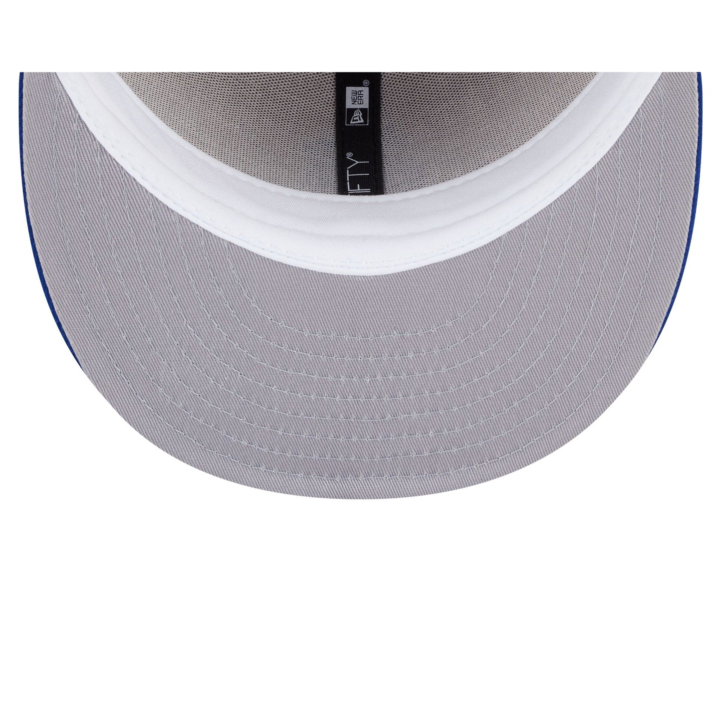 The Duke Blue Devils Camel College Vault 59FIFTY Fitted Cap features an embroidered Blue Devils logo at the front panels with a matching team wordmark at the rear and a gray undervisor.