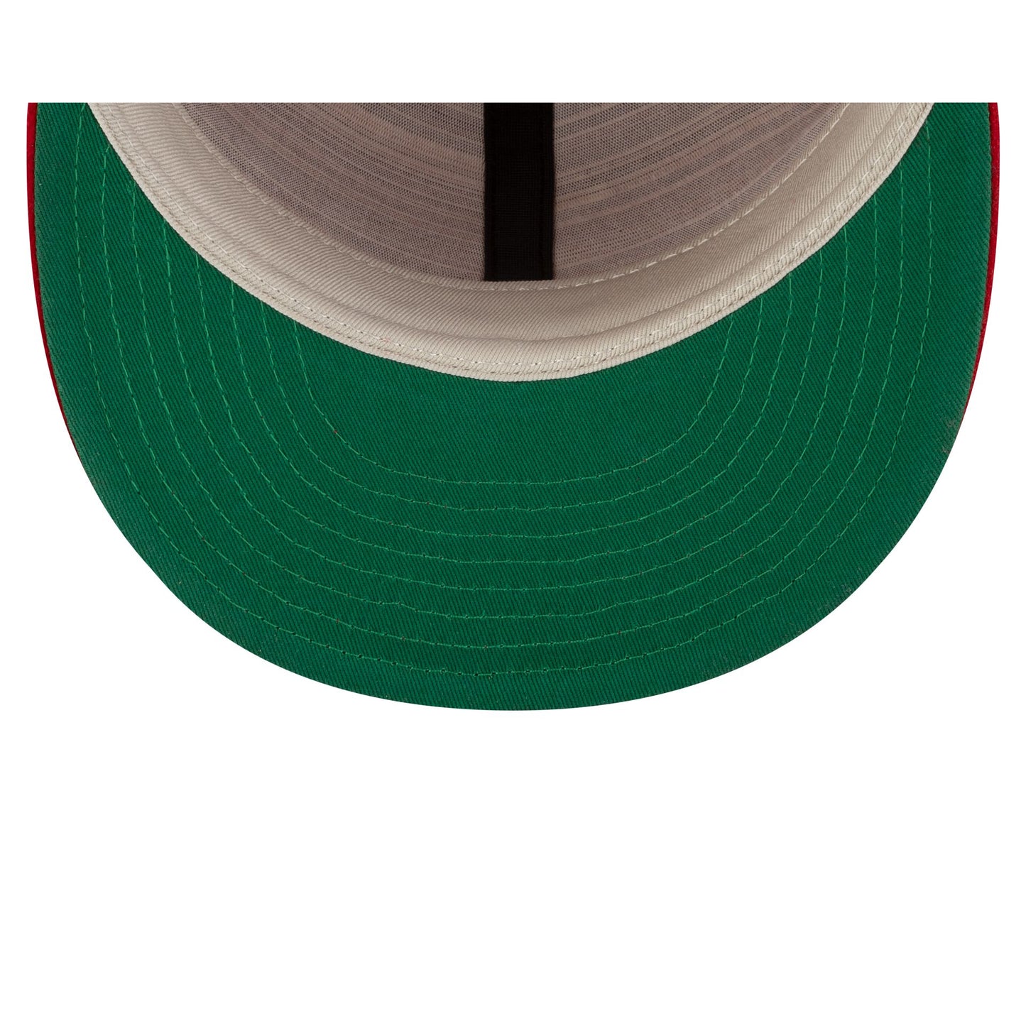 The Fear of God Essentials Chicago White Sox Retro Crown 59FIFTY Fitted Cap features an embroidered White Sox logo at the front panels with a Fear of God Essentials bar patch at the rear, a poly-wool blend fabrication, and a green undervisor.