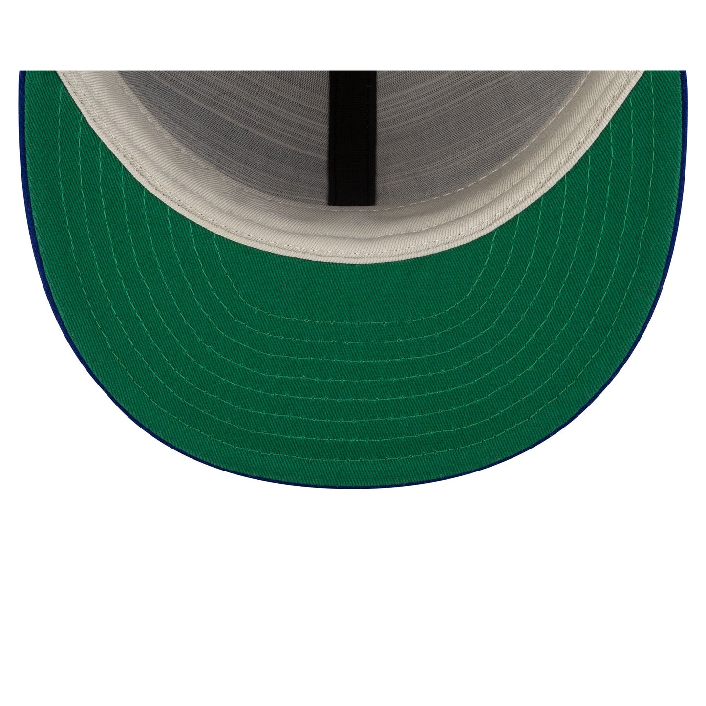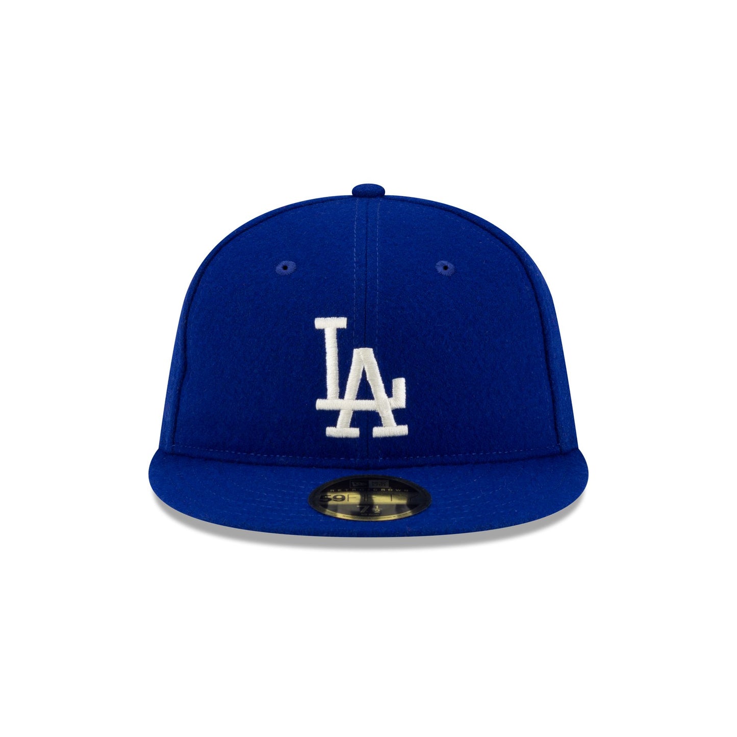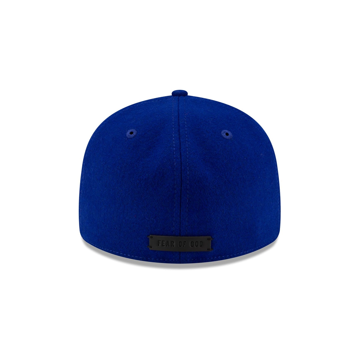 The Fear of God Essentials Los Angeles Dodgers Retro Crown 59FIFTY Fitted Cap features an embroidered Dodgers logo at the front panels with a Fear of God Essentials bar patch at the rear, a poly-wool blend fabrication, and a green undervisor.