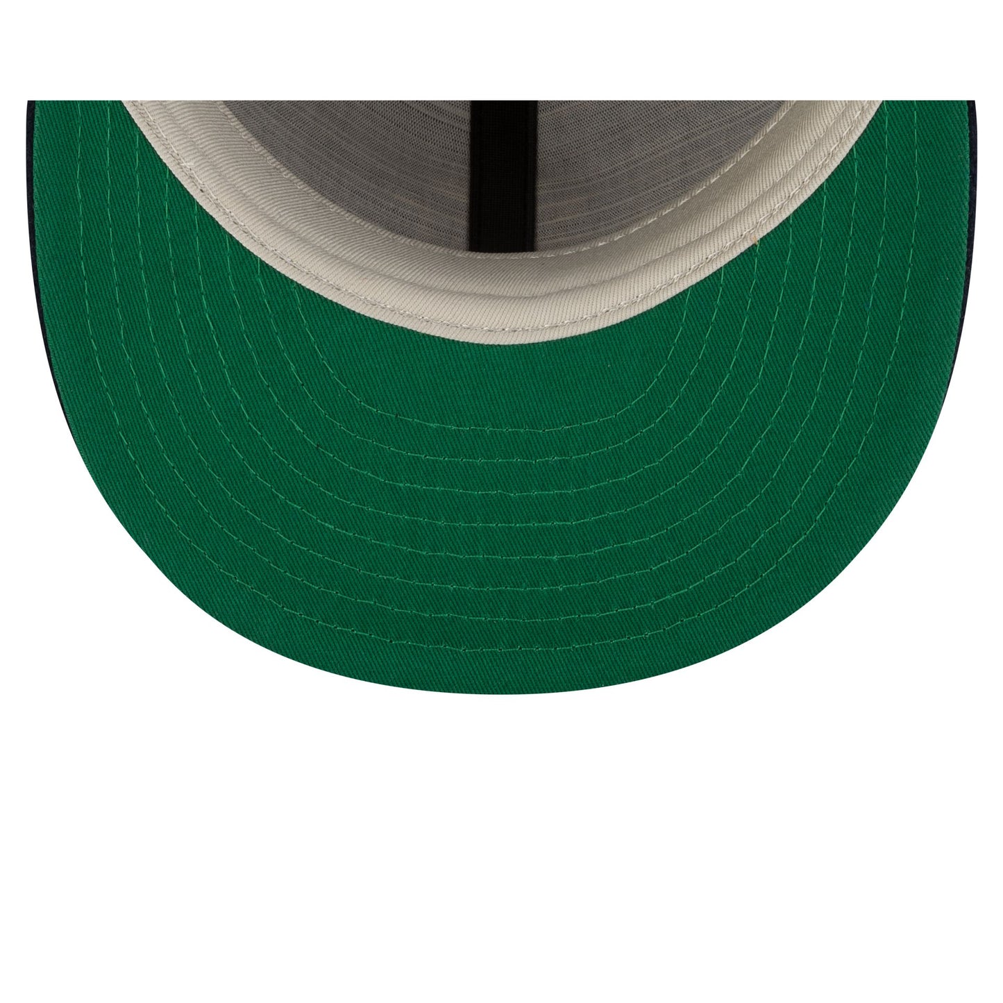 The Fear of God Essentials New York Yankees Retro Crown 59FIFTY Fitted Cap features an embroidered Yankees logo at the front panels with a Fear of God Essentials bar patch at the rear, a poly-wool blend fabrication, and a green undervisor.