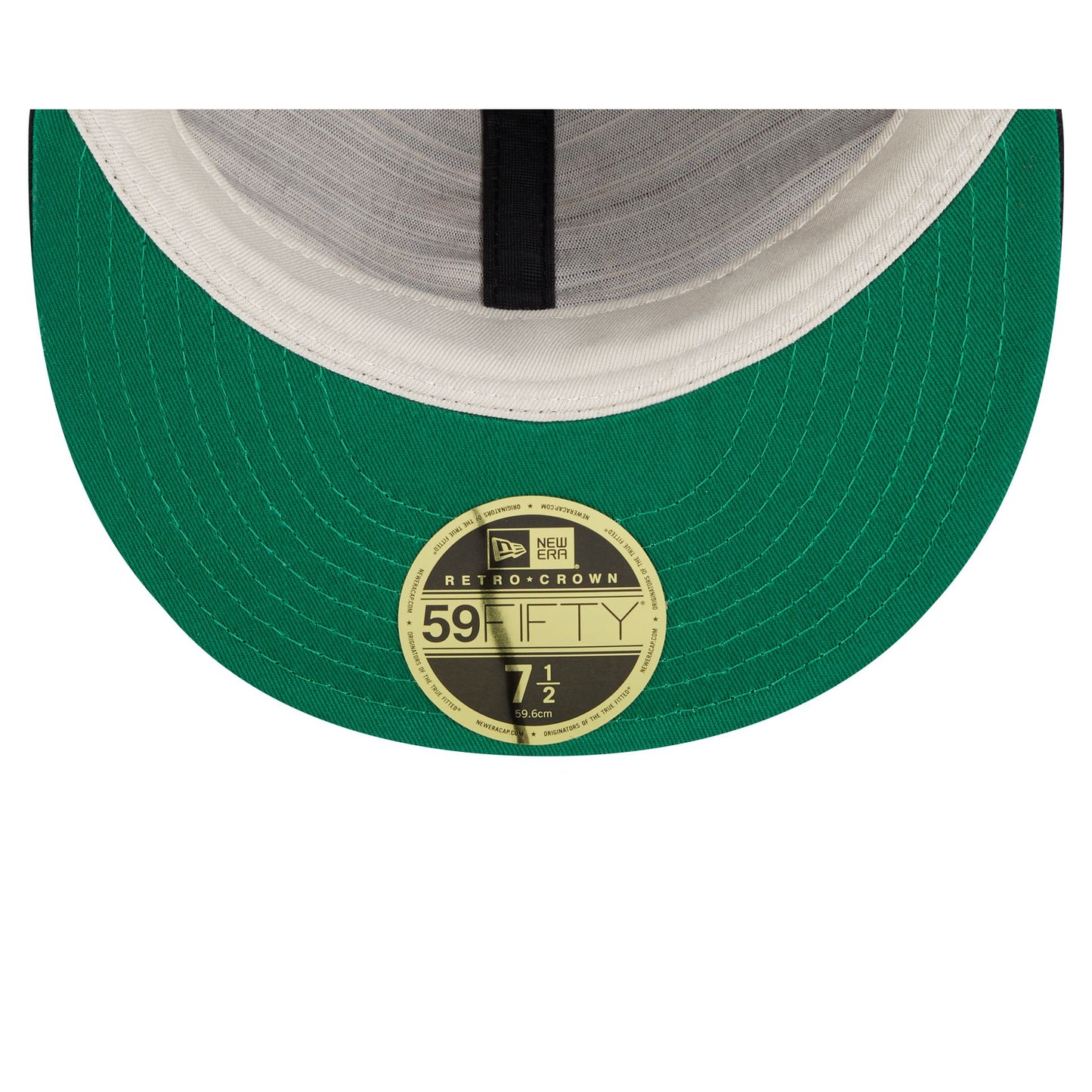 The Fear of God Essentials San Francisco Giants Retro Crown 59FIFTY Fitted Cap features an embroidered Giants logo at the front panels with a Fear of God Essentials bar patch at the rear, a poly-wool blend fabrication, and a green undervisor.