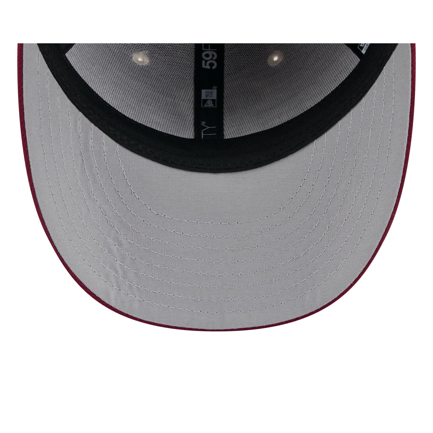 The Frisco RoughRiders Authentic Collection Low Profile 59FIFTY Fitted Cap features an embroidered RoughRiders logo at the front panels with a matching MiLB Batterman logo at the rear and a gray undervisor.