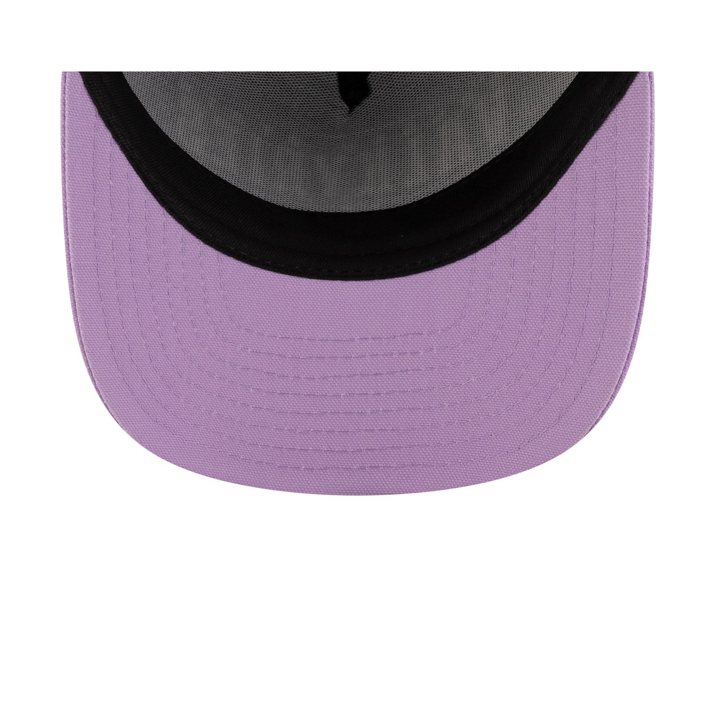 The Golden State Valkyries 2025 Draft 9FIFTY A-Frame Snapback features an embroidered Valkyries logo and wordmark at the front panels with a WNBA Logowoman above a snapback closure at the rear.