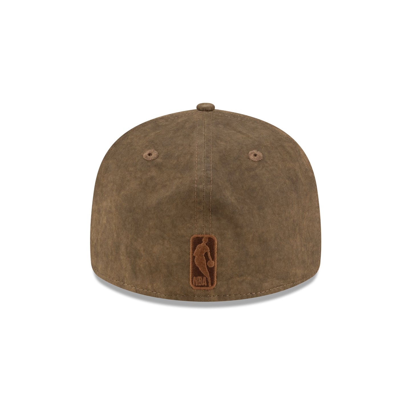 The Golden State Warriors Utility Linen Retro Crown 59FIFTY Fitted Cap features an embroidered Warriors logo at the front panels with a team patch at the right-wear side. Additional details include a faux leather visor and the NBA Logoman at the rear.