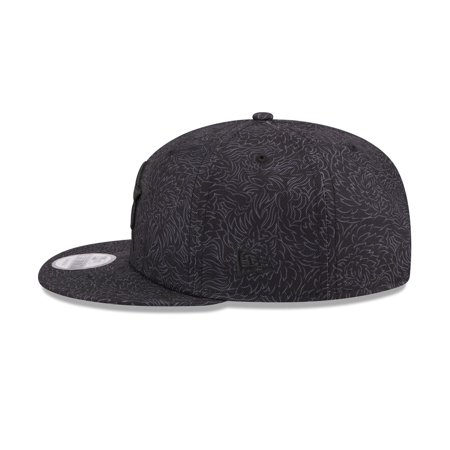 The Greyson Clothiers x Dallas Cowboys Den of Thieves 9FIFTY Snapback features an embroidered black Cowboys logo at the front panels with a monochromatic Den of Thieves print throughout the cap. Additional details include a Greyson Clothiers tag on an adjustable snapback closure at the rear and a black undervisor.
