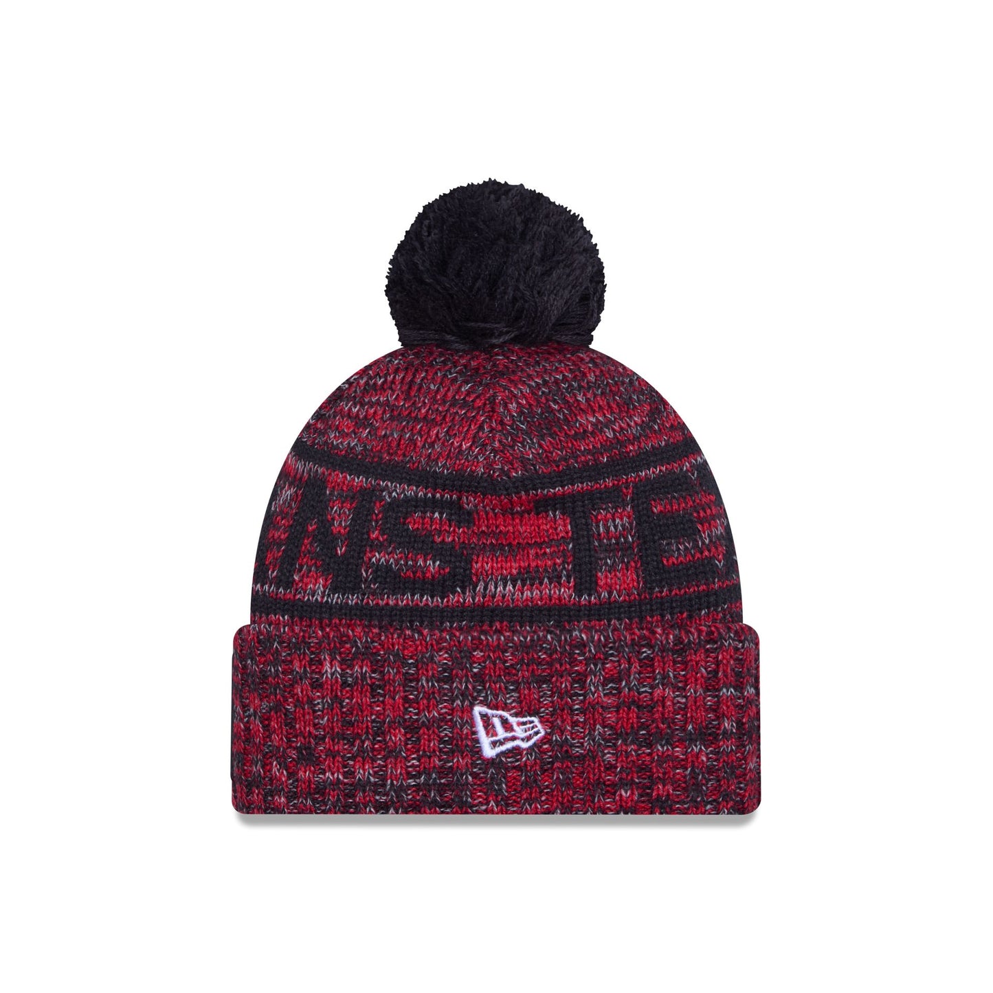 The Houston Texans 2025 Sideline Cold Weather Pom Knit Hat features a sewn-down silicone Texans logo patch at the front cuff with a matching Official NFL Shield logo at the rear. Additional details include a team wordmark across the crown, a one-time removeable pom, and a fleece lining.