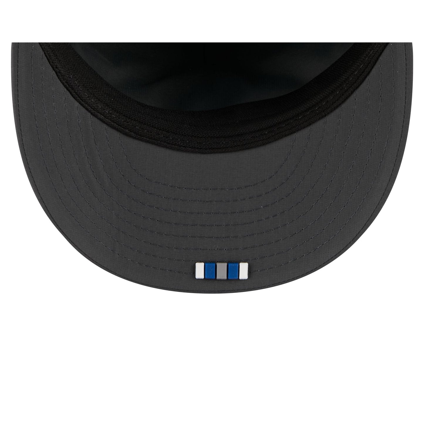 The Indianapolis Colts 2025 Sideline Cold Weather Steel Clouds Retro Crown 59FIFTY A-Frame Fitted Cap features a sewn-down silicone Colts logo patch at the front panels with the Official NFL Shield logo at the rear. The cap has a water-repellent quill tech fabrication throughout, with an insulated crown and quick-dry cushioned sweatband. The undervisor is accented with a silicone transfer in the team’s colors.