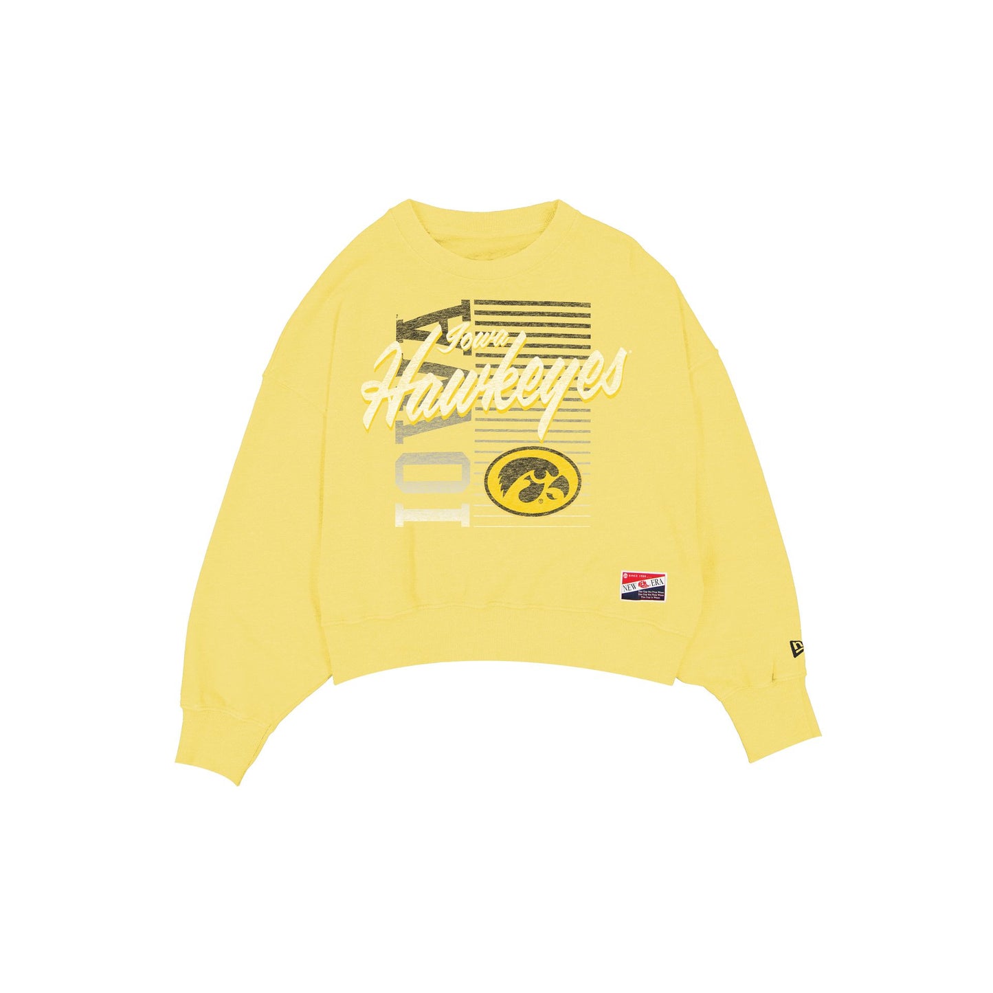 The Iowa Hawkeyes Throwback Women's Washed Crewneck features a screen-printed Hawkeyes graphic at the front.