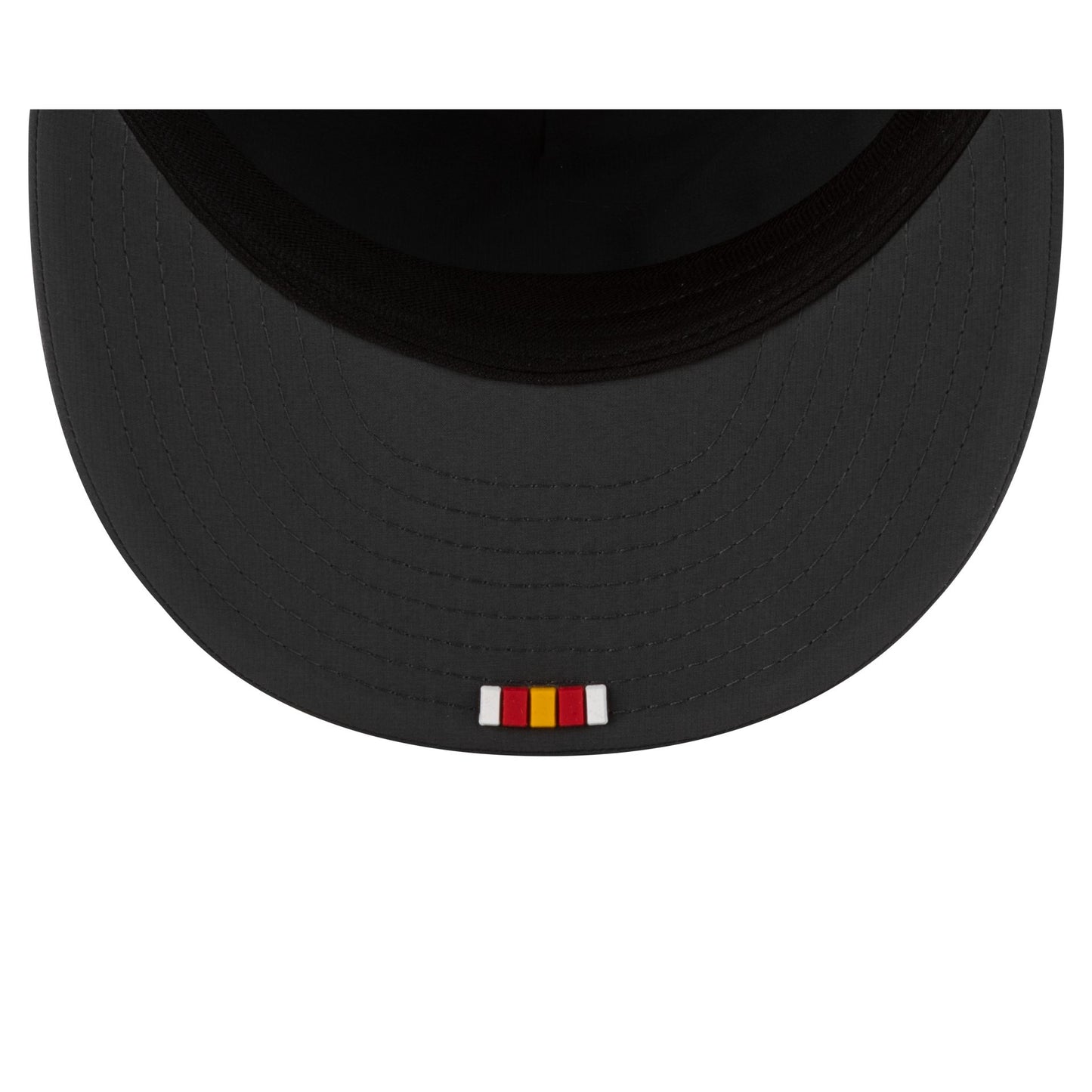 The Kansas City Chiefs 2025 Sideline Cold Weather Steel Clouds Retro Crown 59FIFTY A-Frame Fitted Cap features a sewn-down silicone Chiefs logo patch at the front panels with the Official NFL Shield logo at the rear. The cap has a water-repellent quill tech fabrication throughout, with an insulated crown and quick-dry cushioned sweatband. The undervisor is accented with a silicone transfer in the team’s colors.