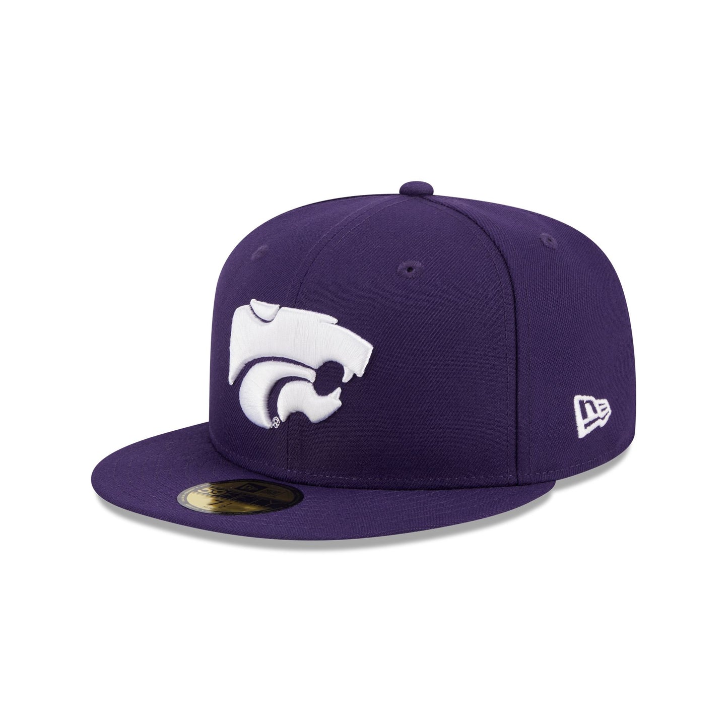 The Kansas State Wildcats Go-To 59FIFTY Fitted Cap features an embroidered Wildcats logo at the front panels with a matching team wordmark at the rear and a gray undervisor.