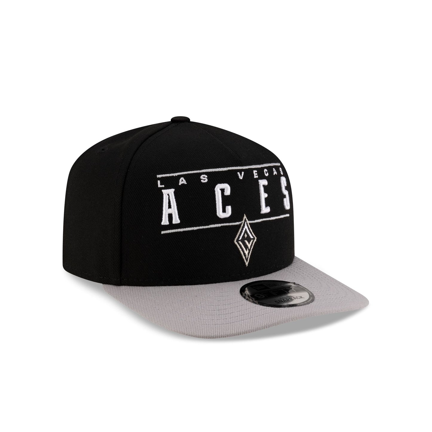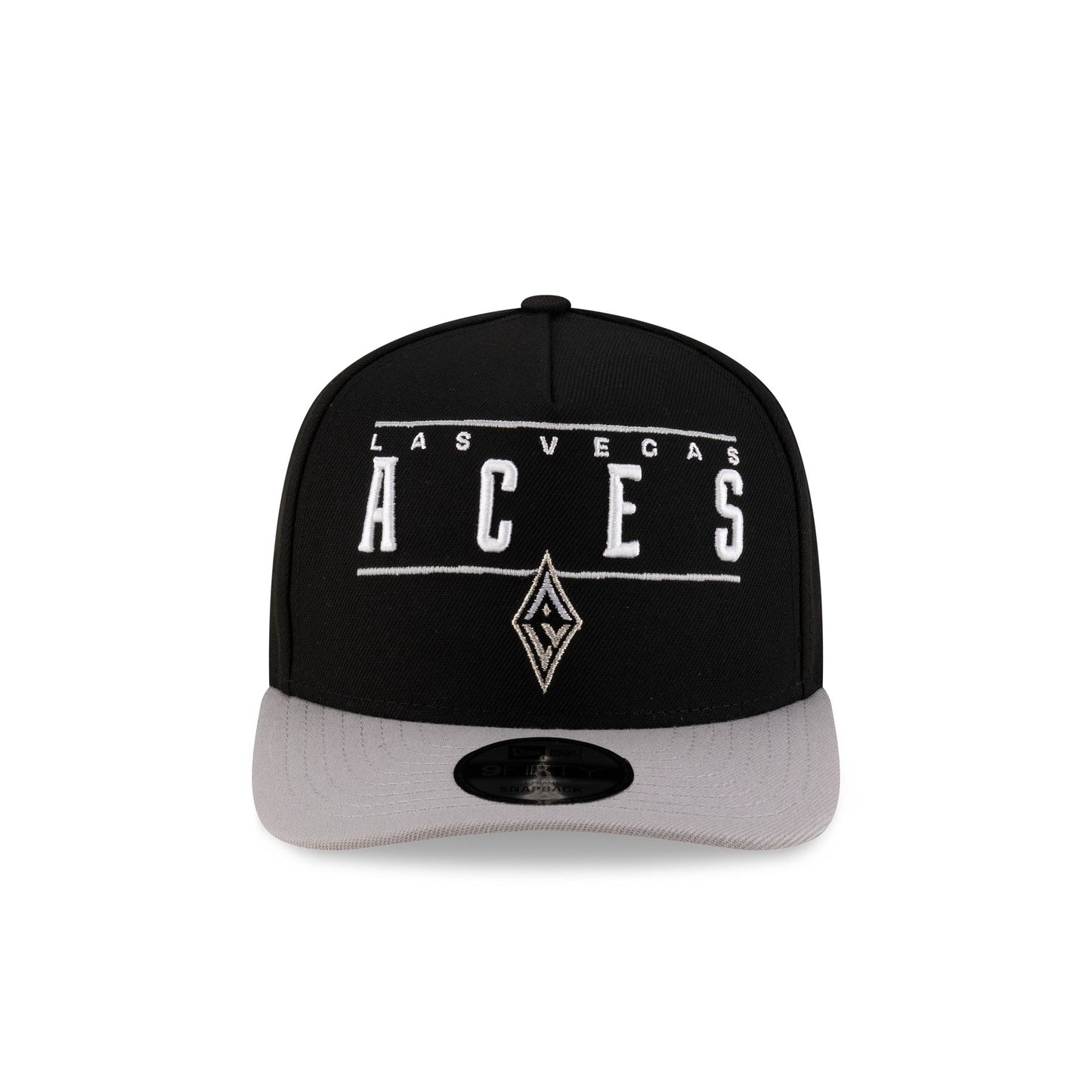 The Las Vegas Aces 2025 Draft 9FIFTY A-Frame Snapback features an embroidered Aces logo and wordmark at the front panels with a WNBA Logowoman above a snapback closure at the rear.