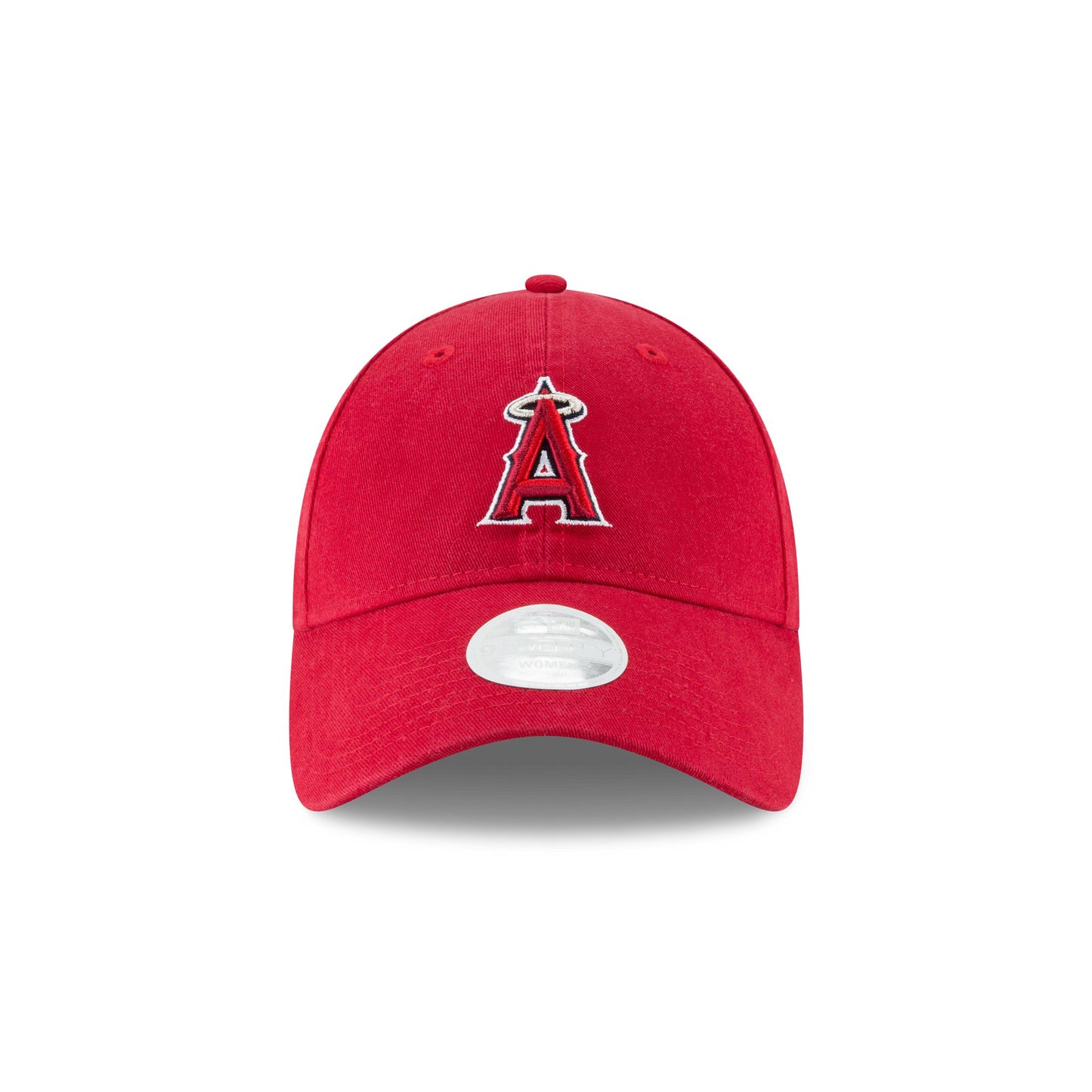 The Los Angeles Angels Women's Core Classic 9TWENTY Adjustable Cap features an embroidered Angels at the front panels with a woven tab displaying the team logo and an adjustable closure at the rear.