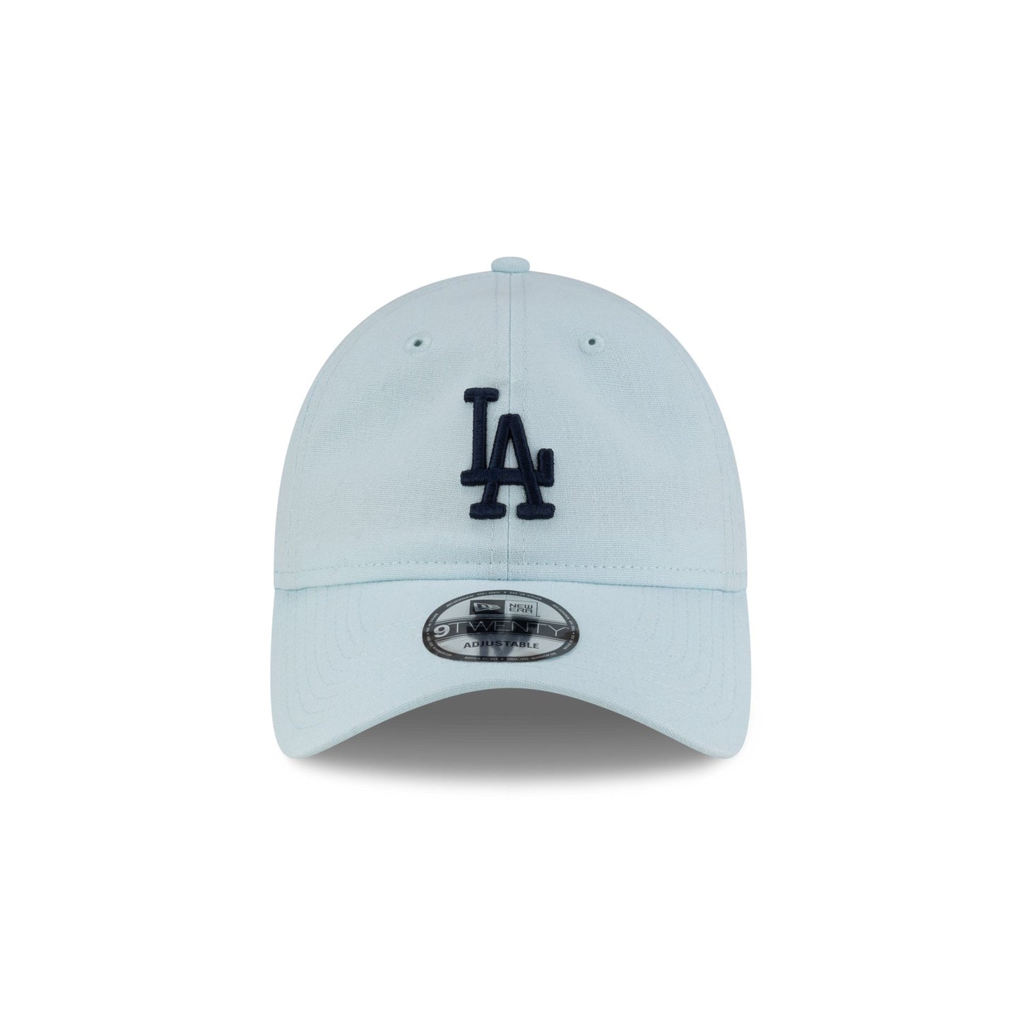 The Los Angeles Dodgers Linen Pastel Blue 9TWENTY Adjustable Cap features a navy embroidered Dodgers logo at the front panels with an adjustable D-Ring closure at the rear.
