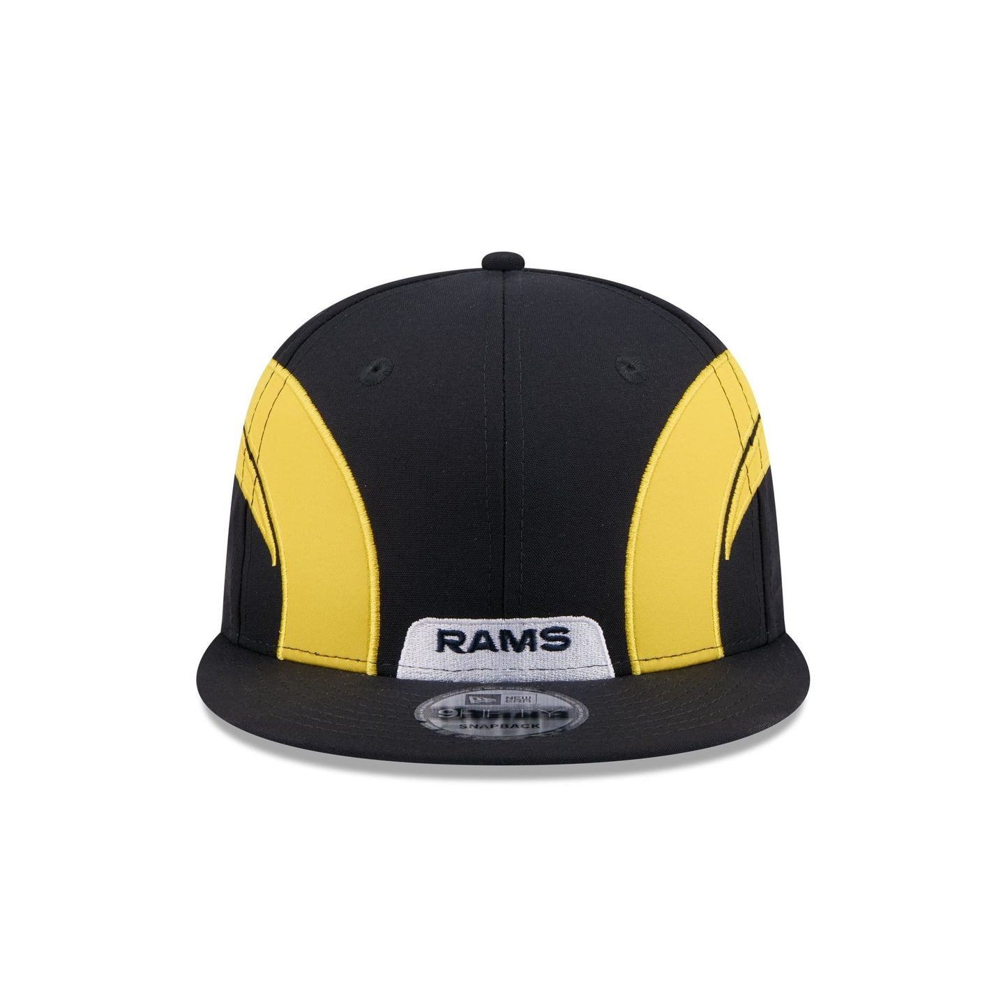 The Los Angeles Rams 2025 NFL Rivalries Helmet Pack 9FIFTY Snapback features an embroidered Rams rivalries helmet design throughout the cap with a tag on an adjustable snapback closure at the rear.