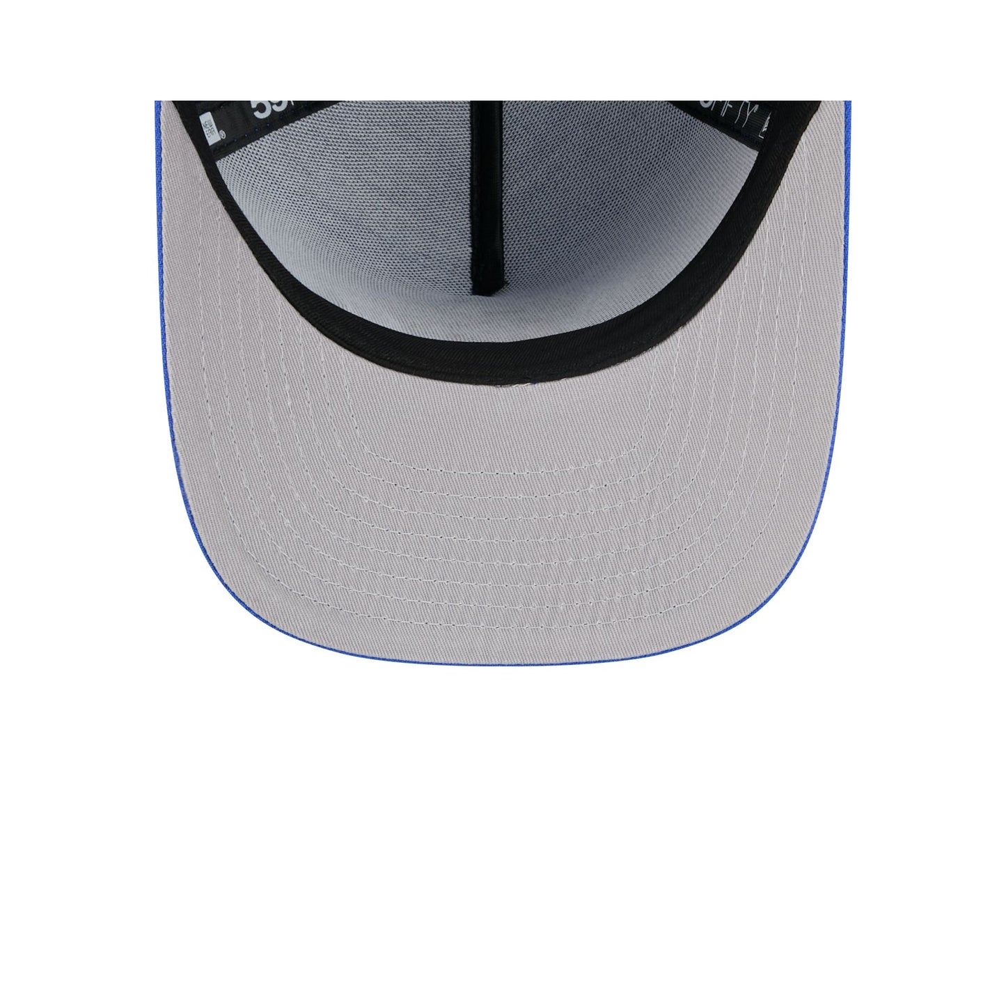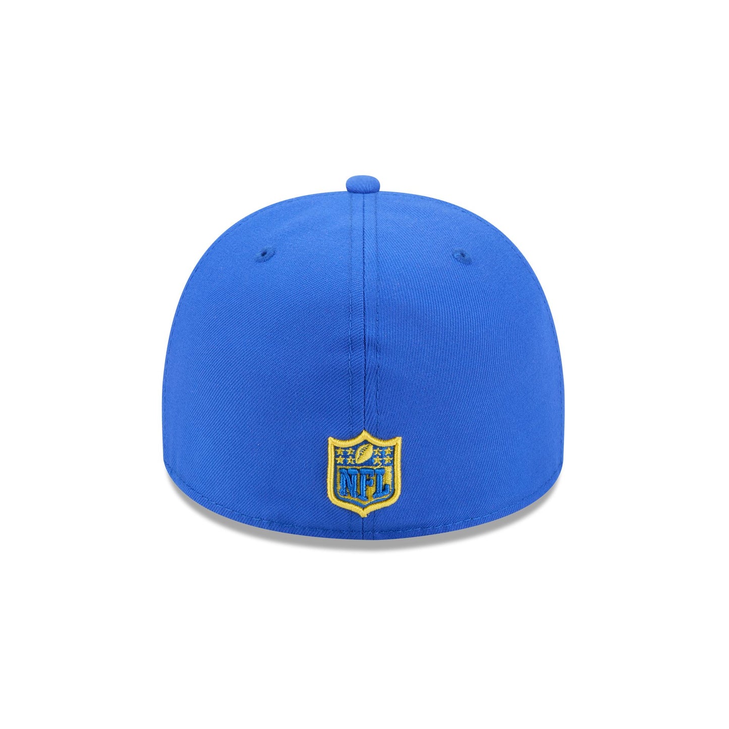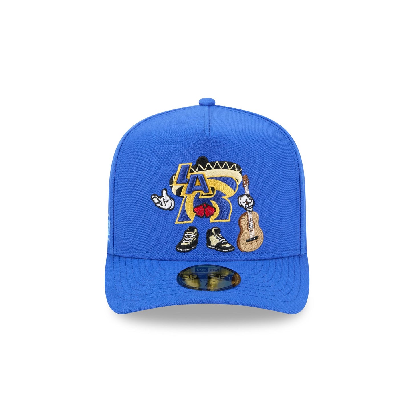The Los Angeles Rams Cartoon 59FIFTY A-Frame Fitted Cap features an embroidered Rams cartoon themed logo at the front with a matching NFL Shield at the rear, a monochromatic team logo at the right-wear side, and a gray undervisor.