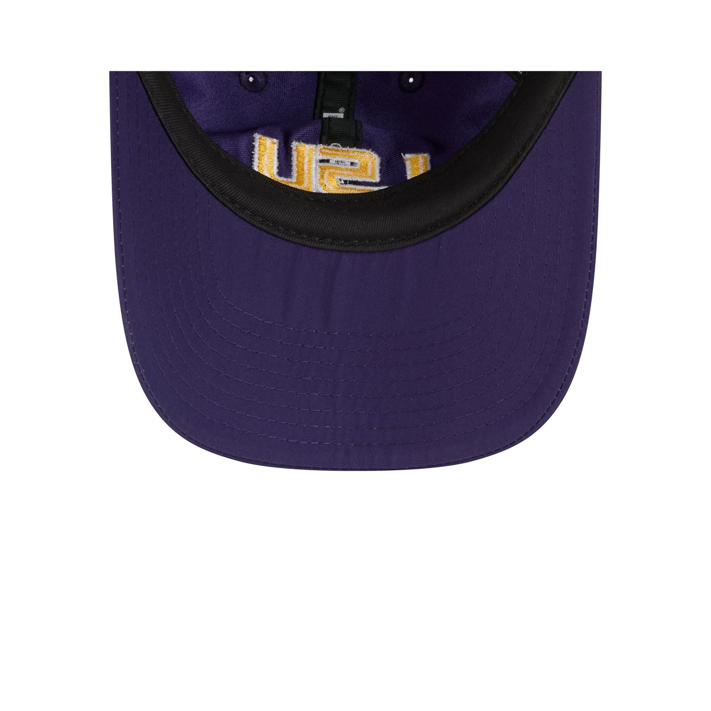 The LSU Tigers Women's Open Back Ponytail Cap features an embroidered Tigers logo at the front panels with elastic straps and an open panel at the rear to accommodate any hairstyle.