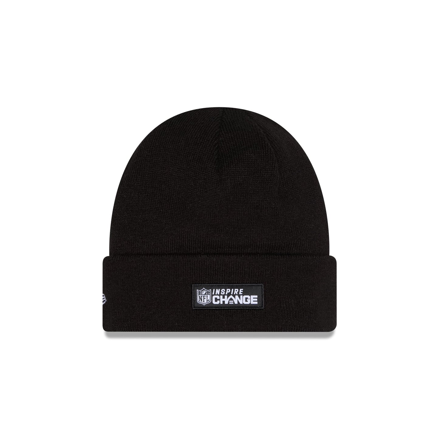 The Miami Dolphins 2025 Inspire Change Beanie features an embroidered Dolphins logo at the front crown and matching "Opportunity" wordmark at the front cuff with an NFL Inspire Change patch at the rear.