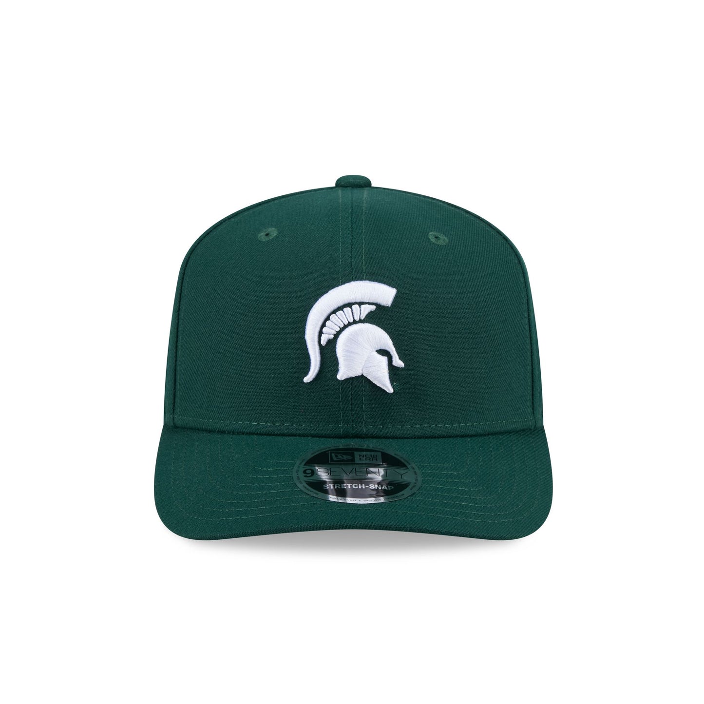 The Michigan State Spartans Basic 9SEVENTY Stretch-Snap Hat features an embroidered Spartans logo at the front panels. Additional details include a snapback closure at the rear with a matching tag and a gray undervisor.